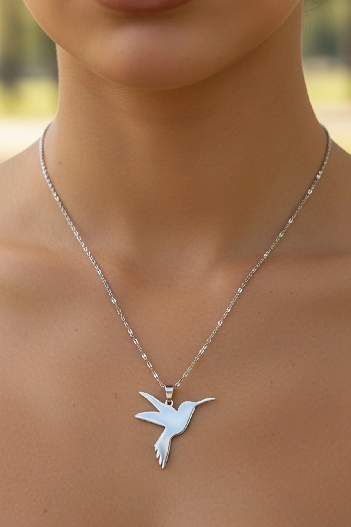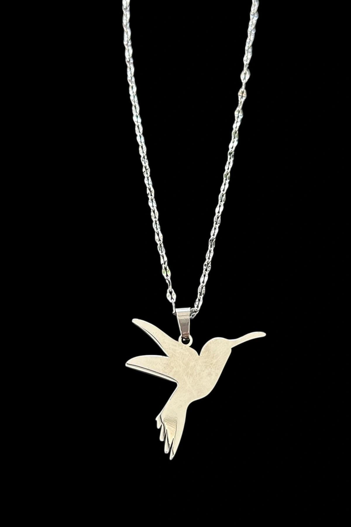 Gümüş Renk Kuş Figürlü Çelik Kolye