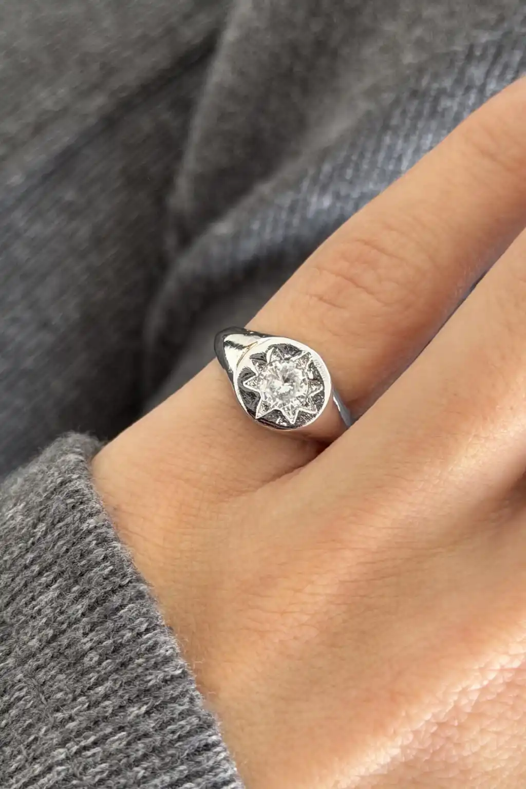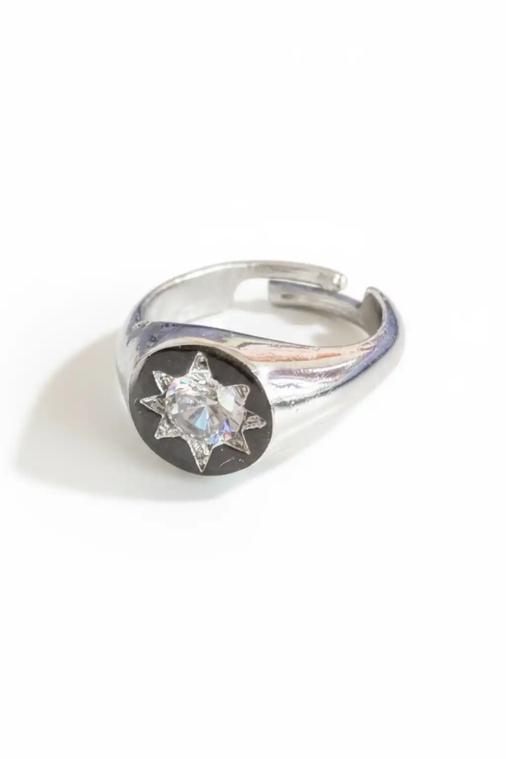 Gümüş Renk Kuzey Yıldızı Figürlü Serçe Parmak Yüzük (Ayarlanabilir)