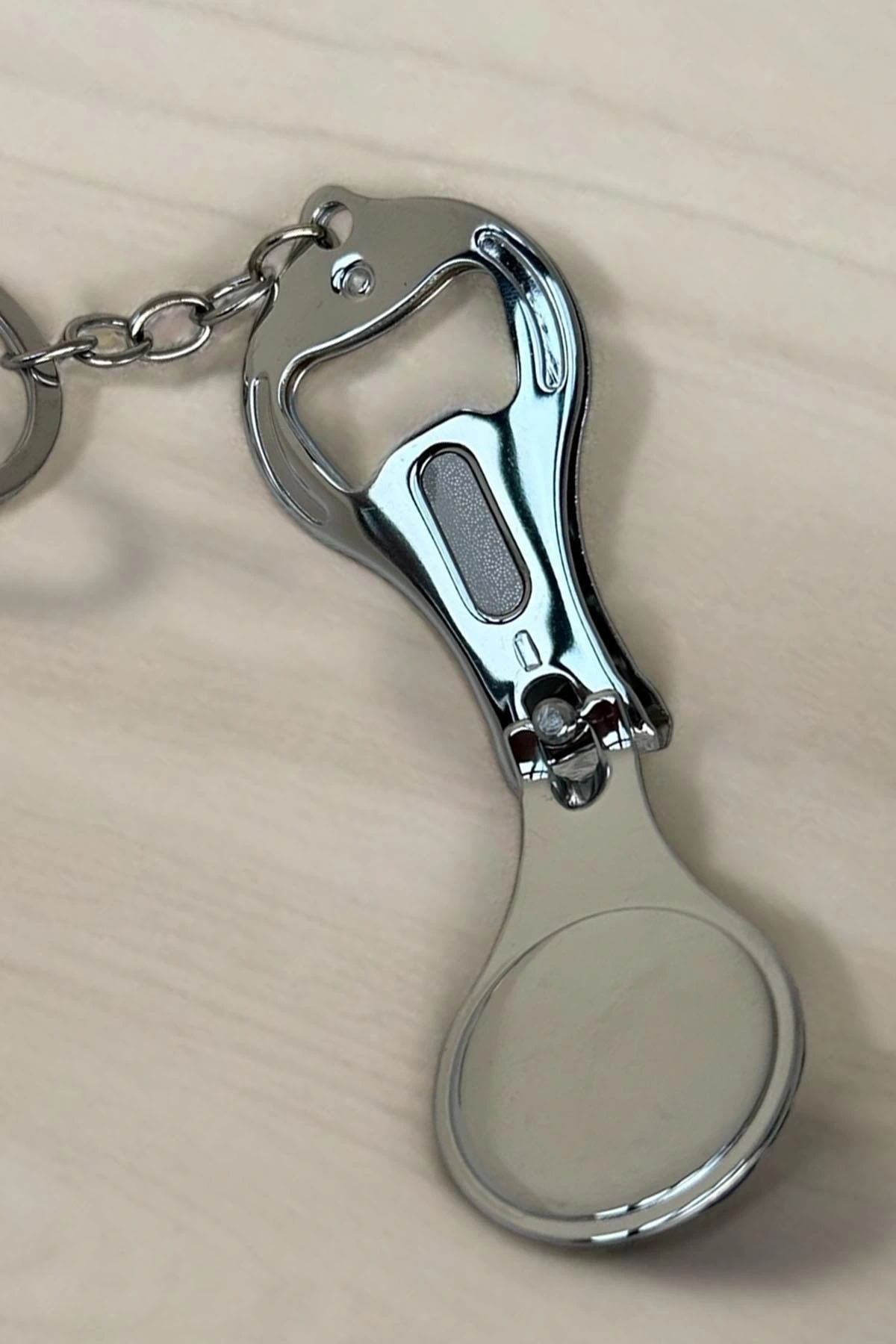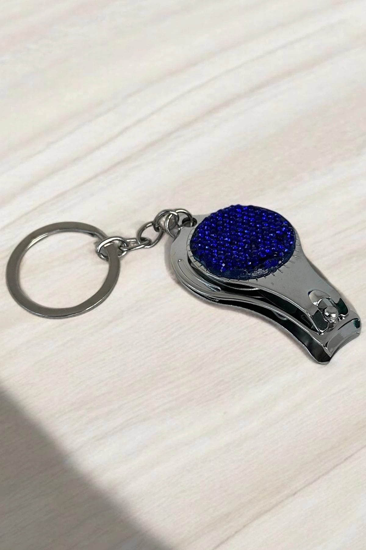 Gümüş Renk Lacivert Taş Detaylı Tırnak Makaslı Anahtarlık