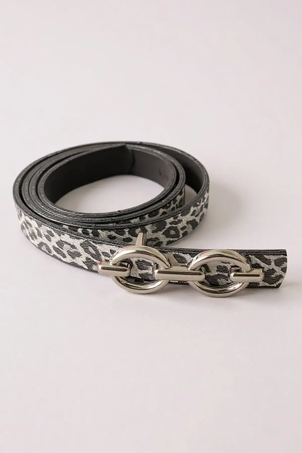 Gümüş Renk Leopar Desenli Kadın Deri Kemer