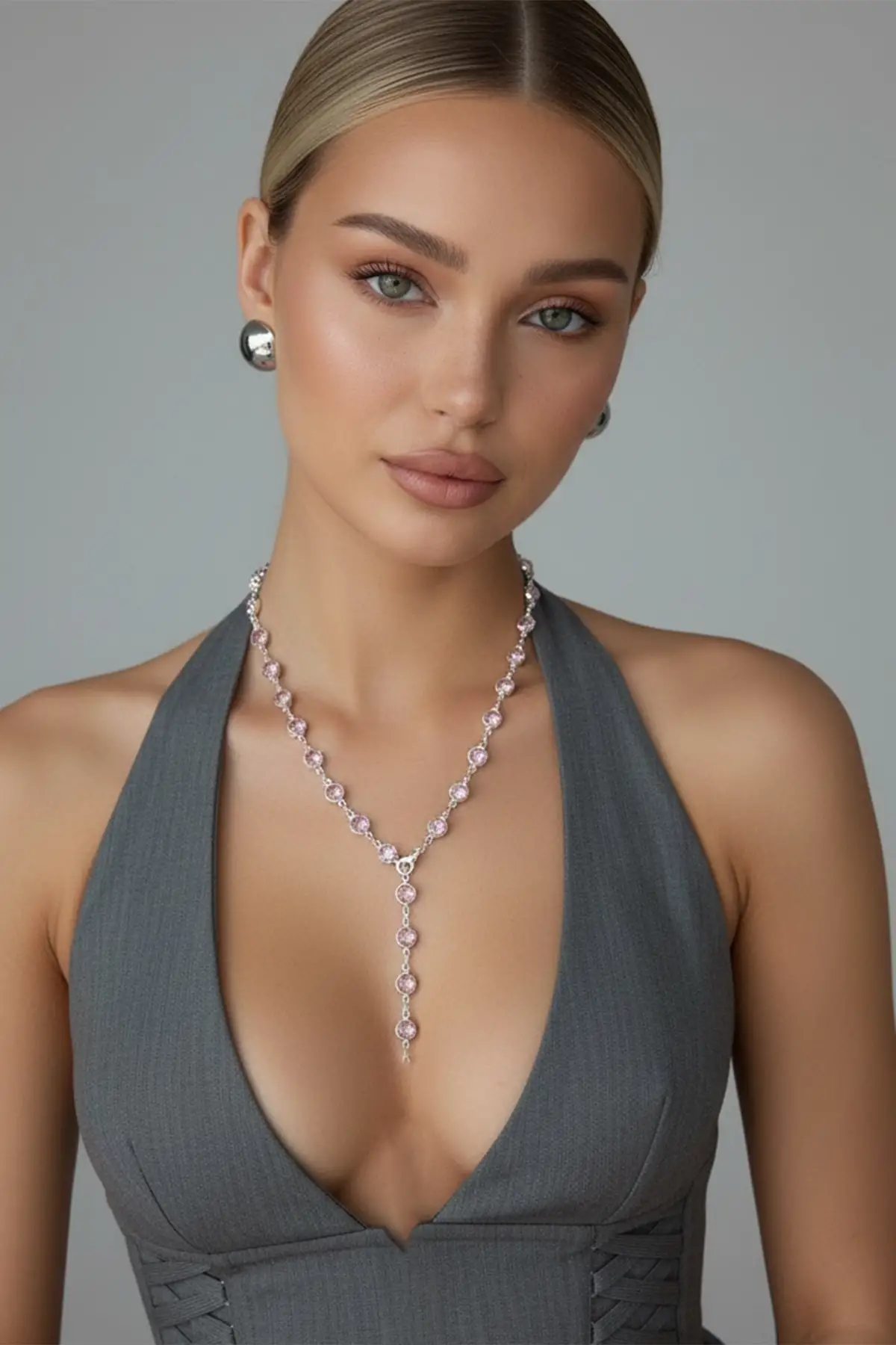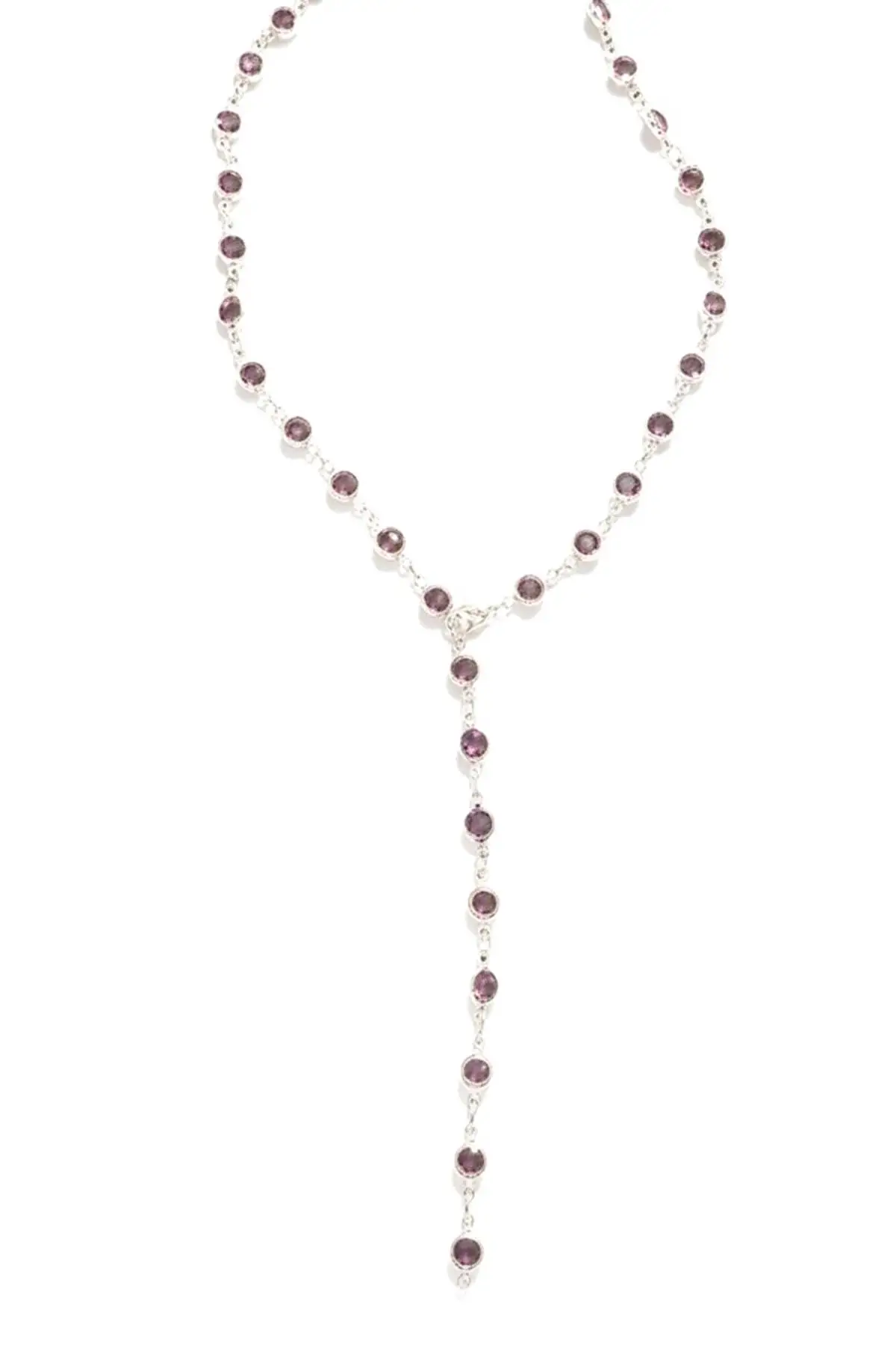 Gümüş Renk Lila Taşlı Çelik Y Kolye