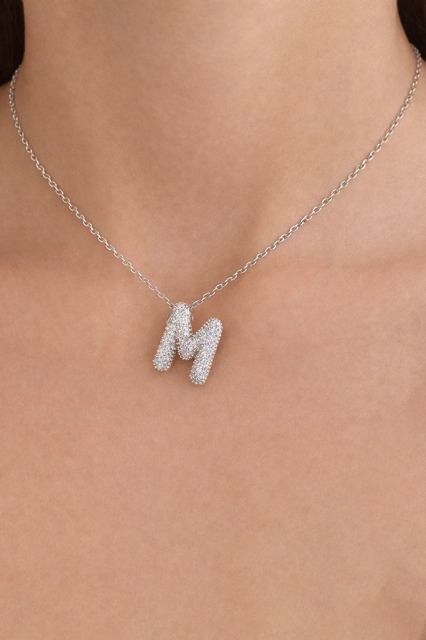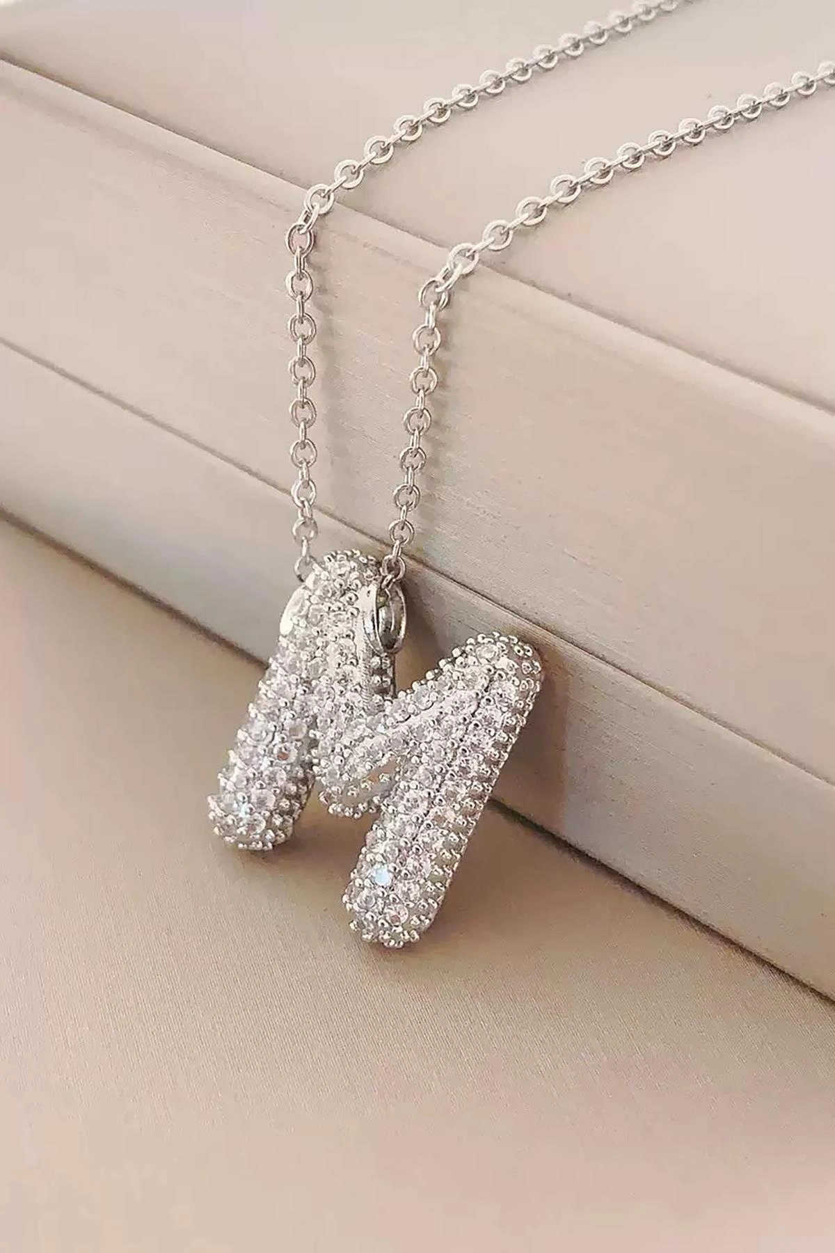 Gümüş Renk M Harf Taş Detaylı Çelik Kolye