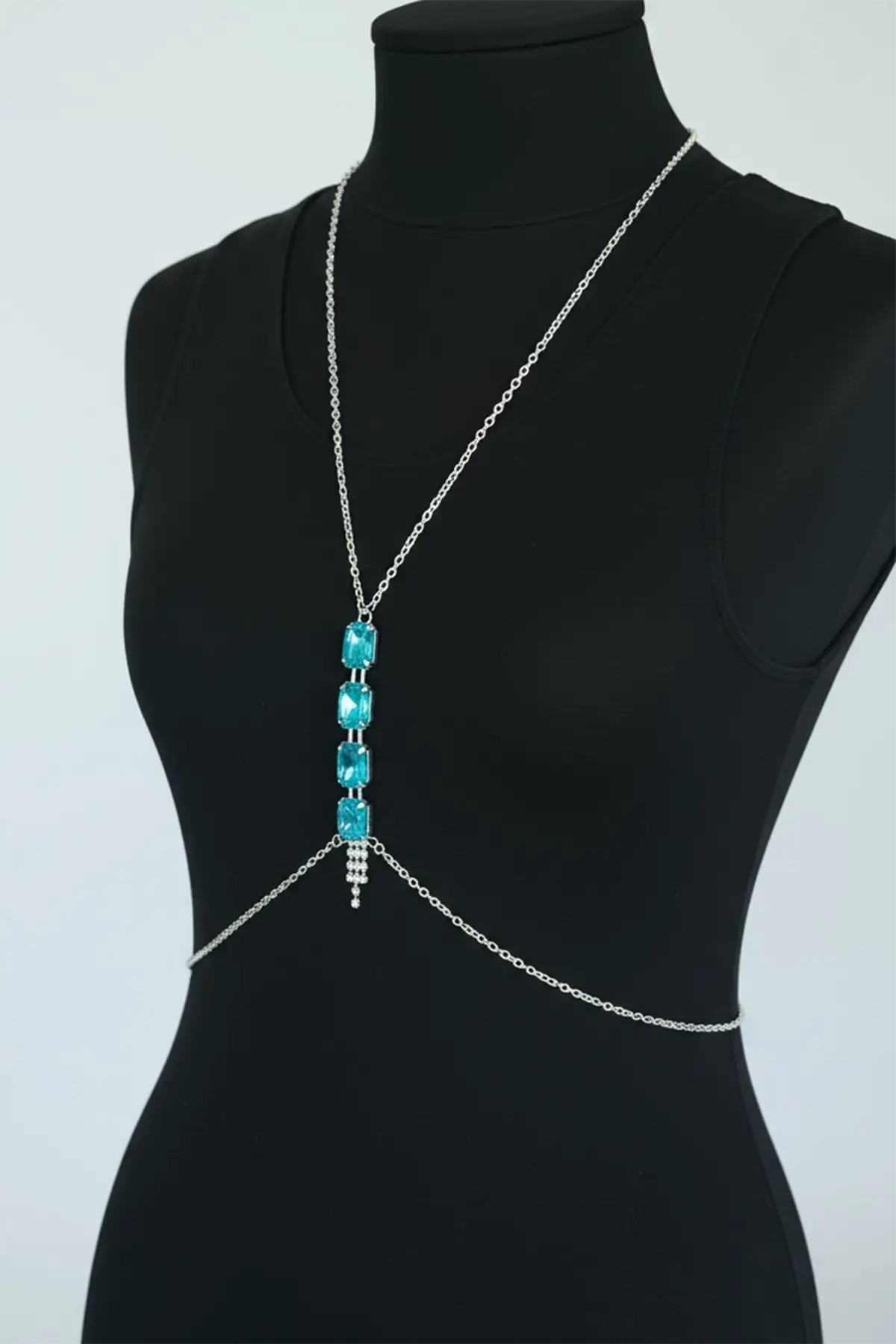 Gümüş Renk Mavi Taş Detaylı Vücut Aksesuarı