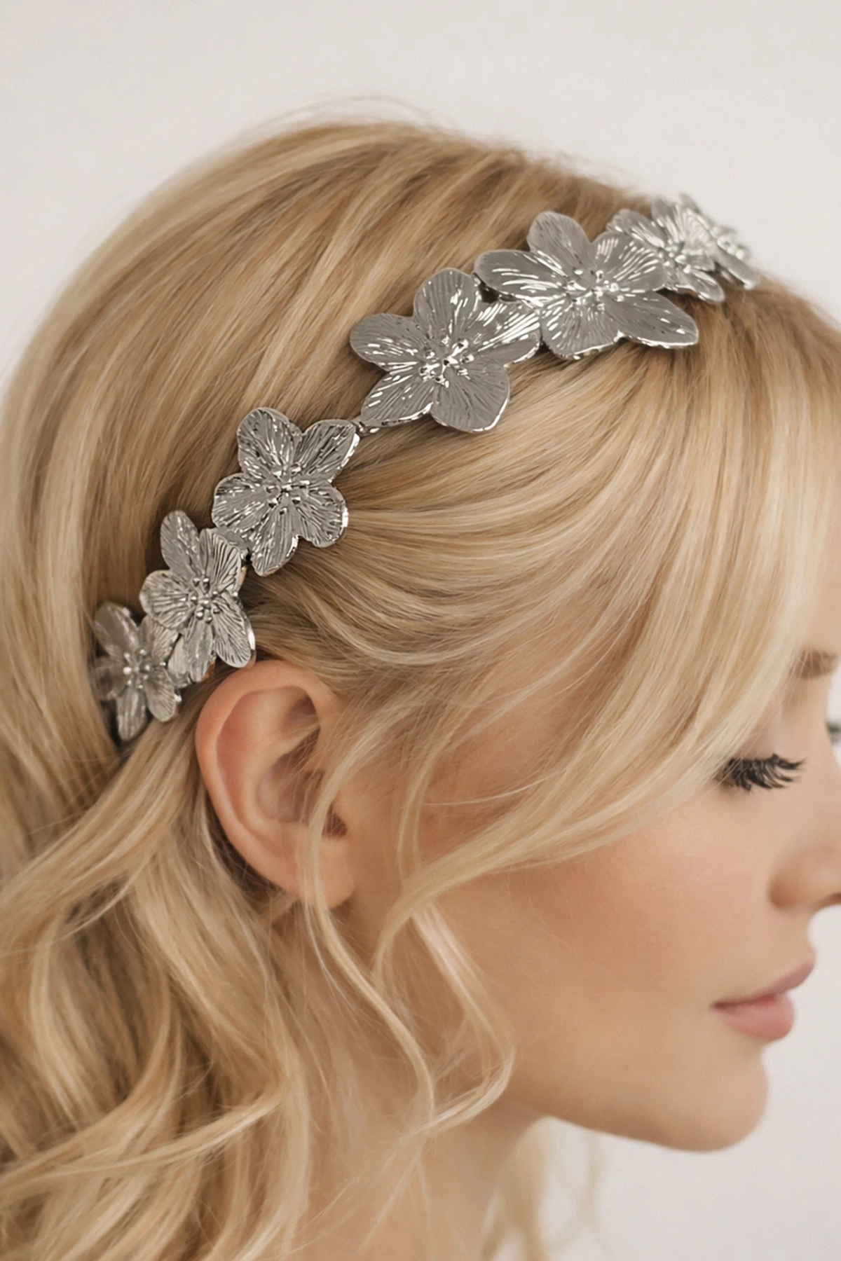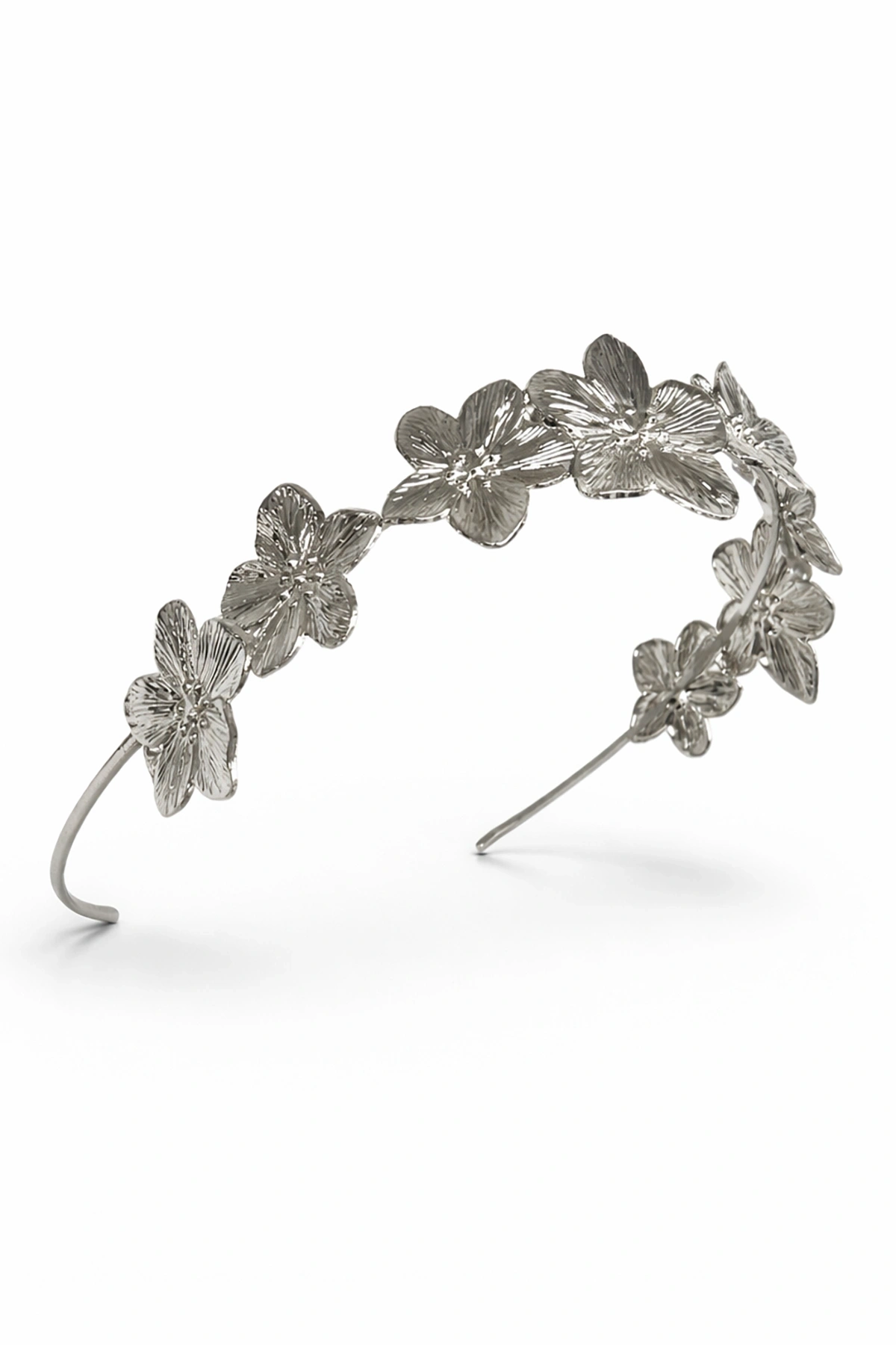 Gümüş Renk Metal Çiçek Figürlü Taç