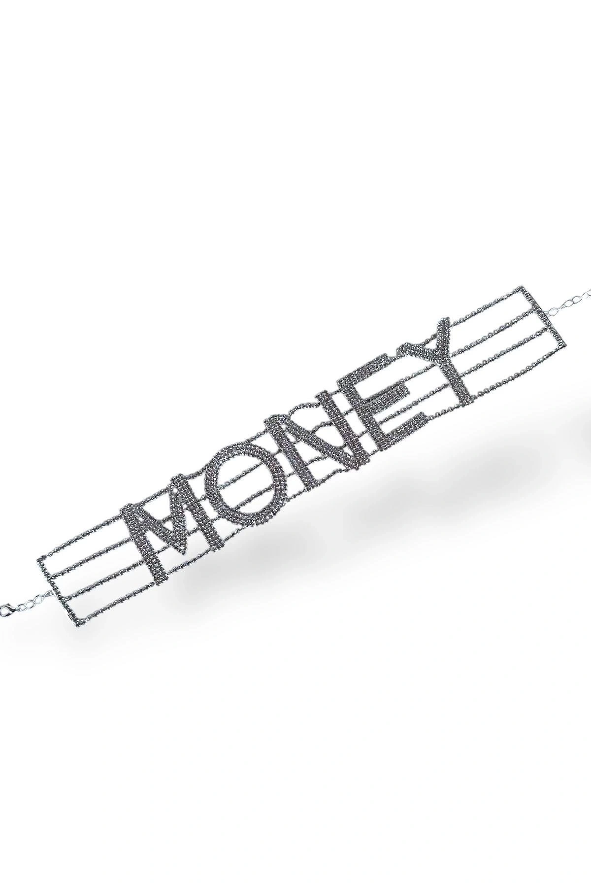 Gümüş Renk Money Yazılı Taş Detaylı Tasarım Kolye