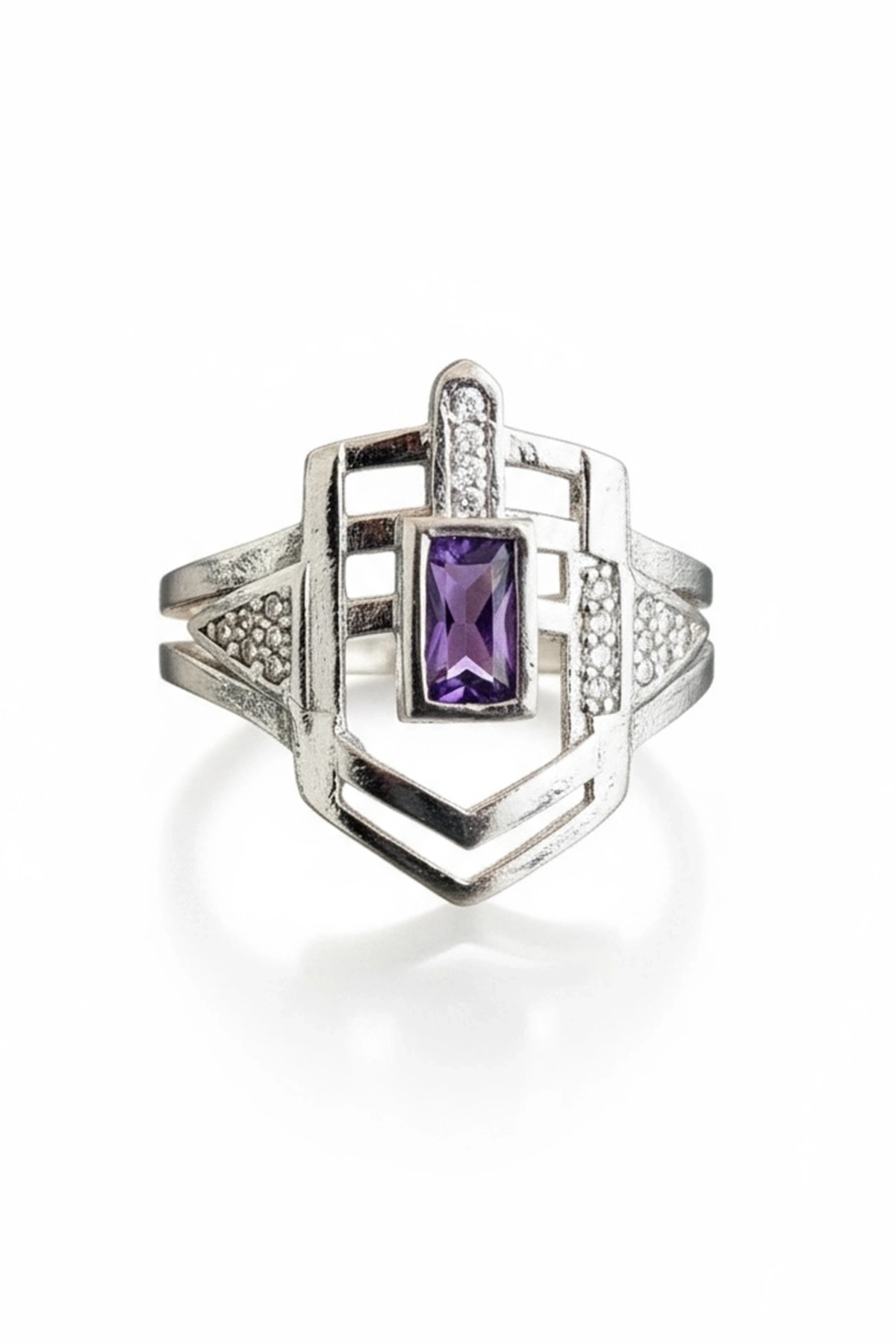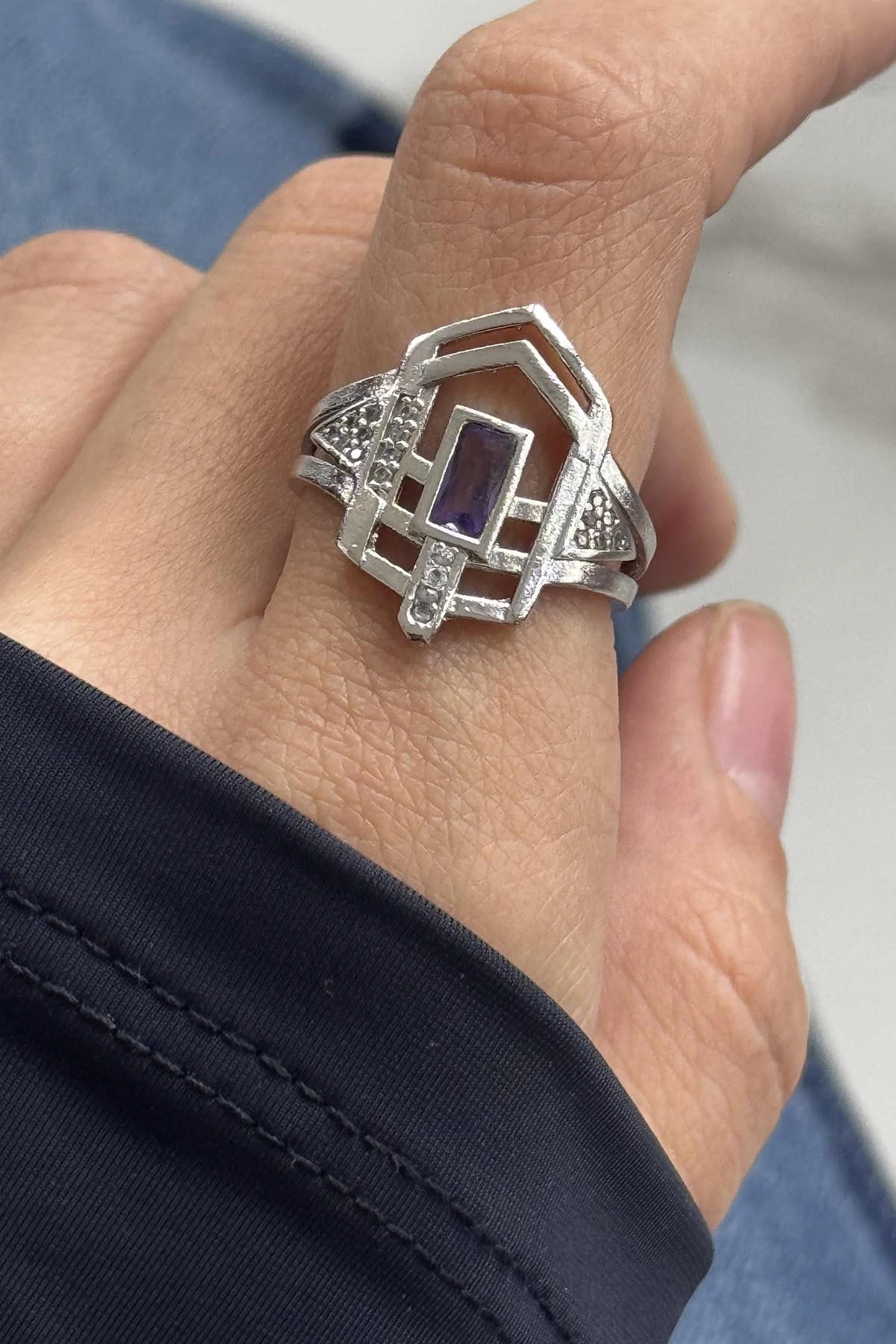Gümüş Renk Mor Taş Detaylı Ayarlanabilir Yüzük