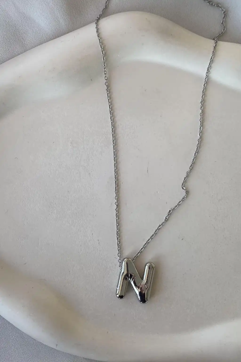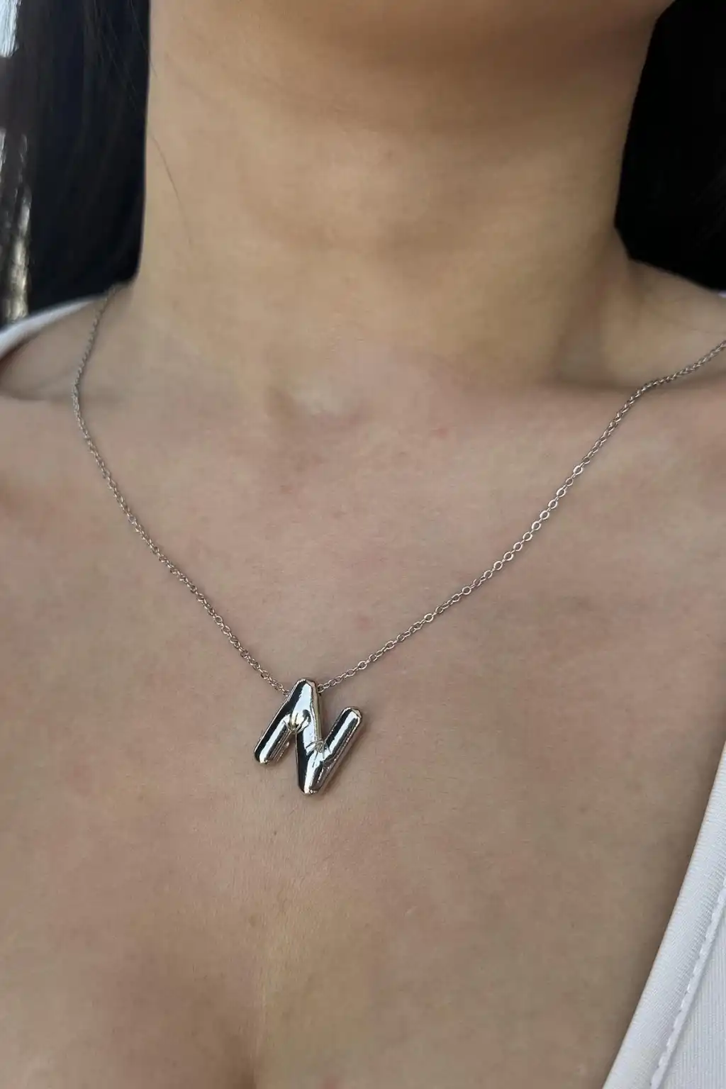 Gümüş Renk Hologram Taş Detaylı Tasarım Abiye Kolye