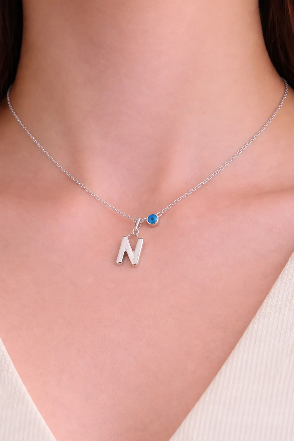 Gümüş Renk N Harf Çelik Kolye