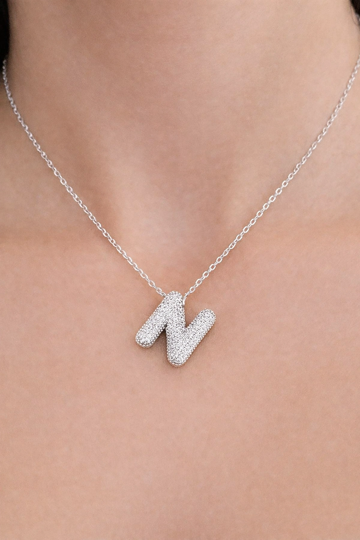 Gümüş Renk N Harf Taş Detaylı Çelik Kolye