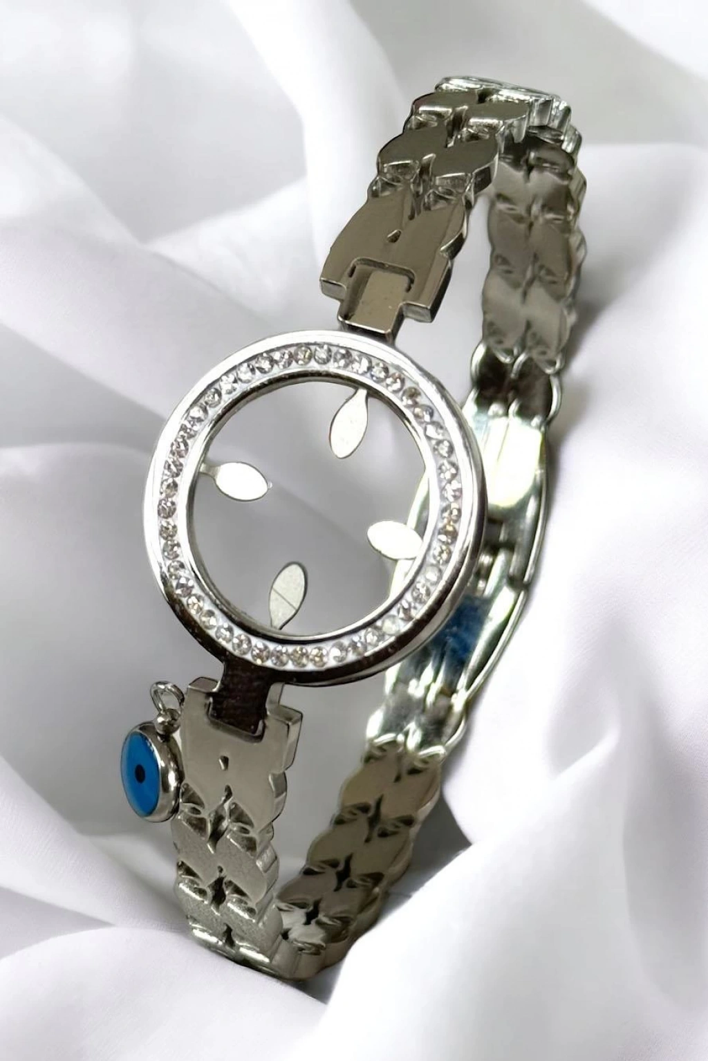 Gümüş Renk Nazar Boncuğu Figürlü Çelik Bileklik