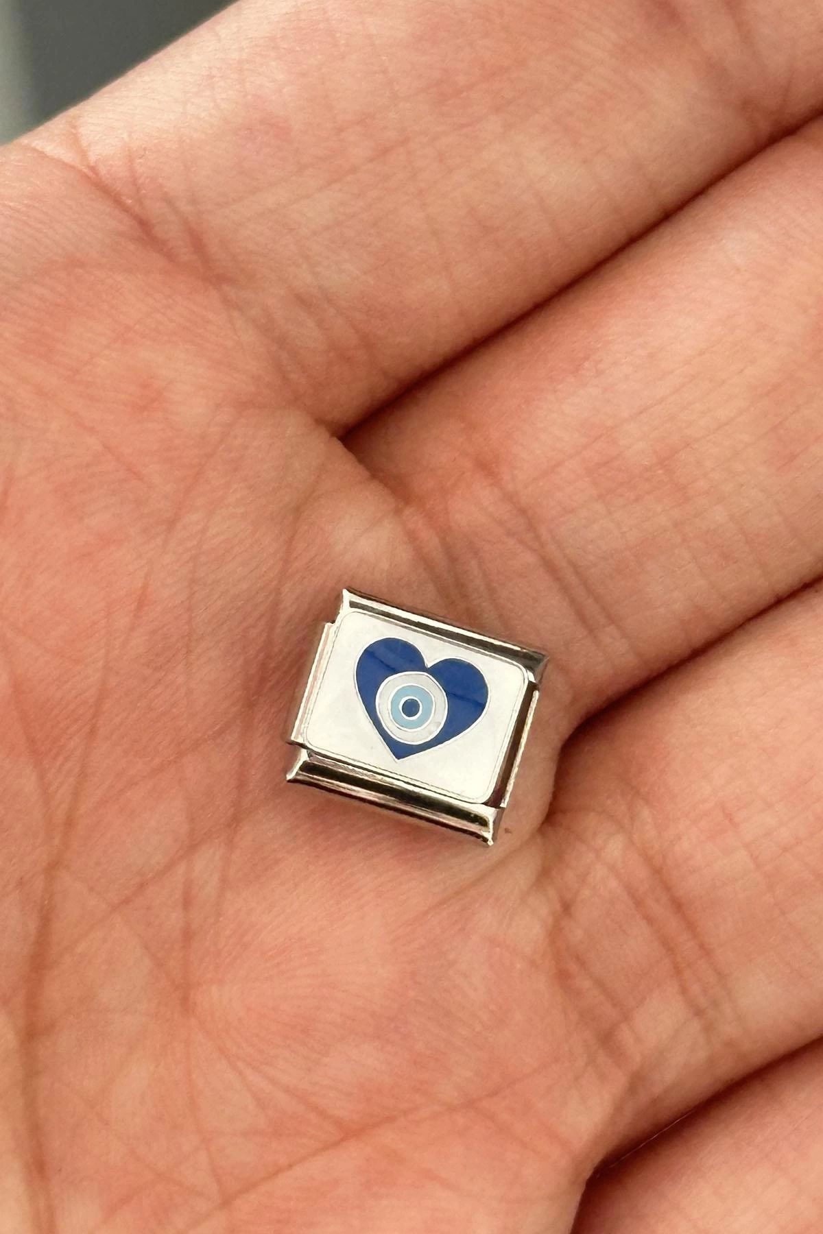 Gümüş Renk Nazar Boncuk Figürlü Çelik Nomination Charm (Tek)