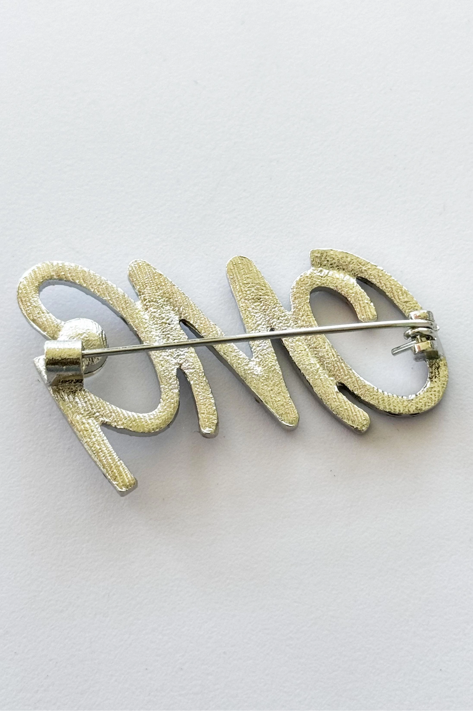 Gümüş Renk Omg Yazılı Taşlı Broş