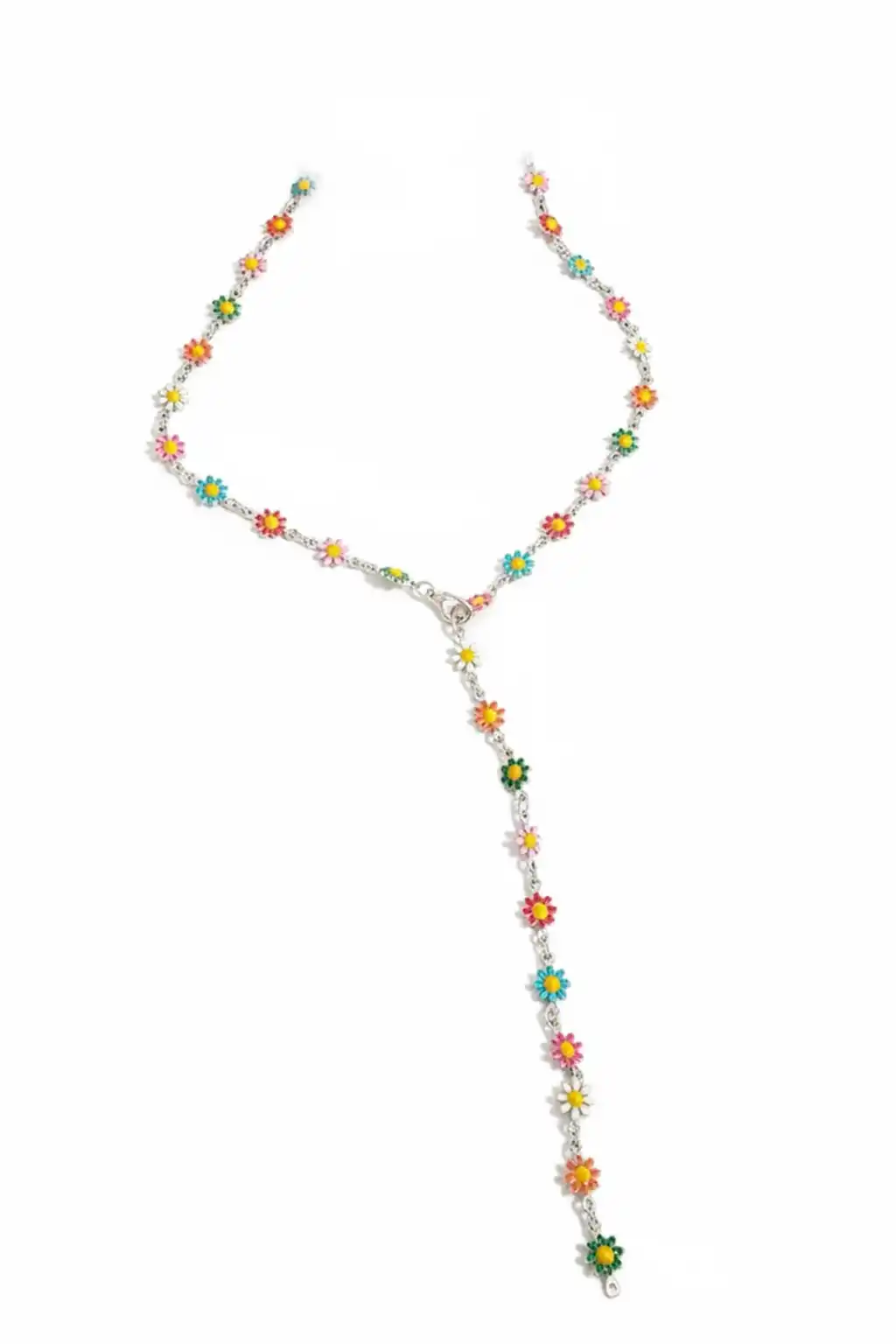Gümüş Renk Papatya Figürlü Çelik Y Kolye