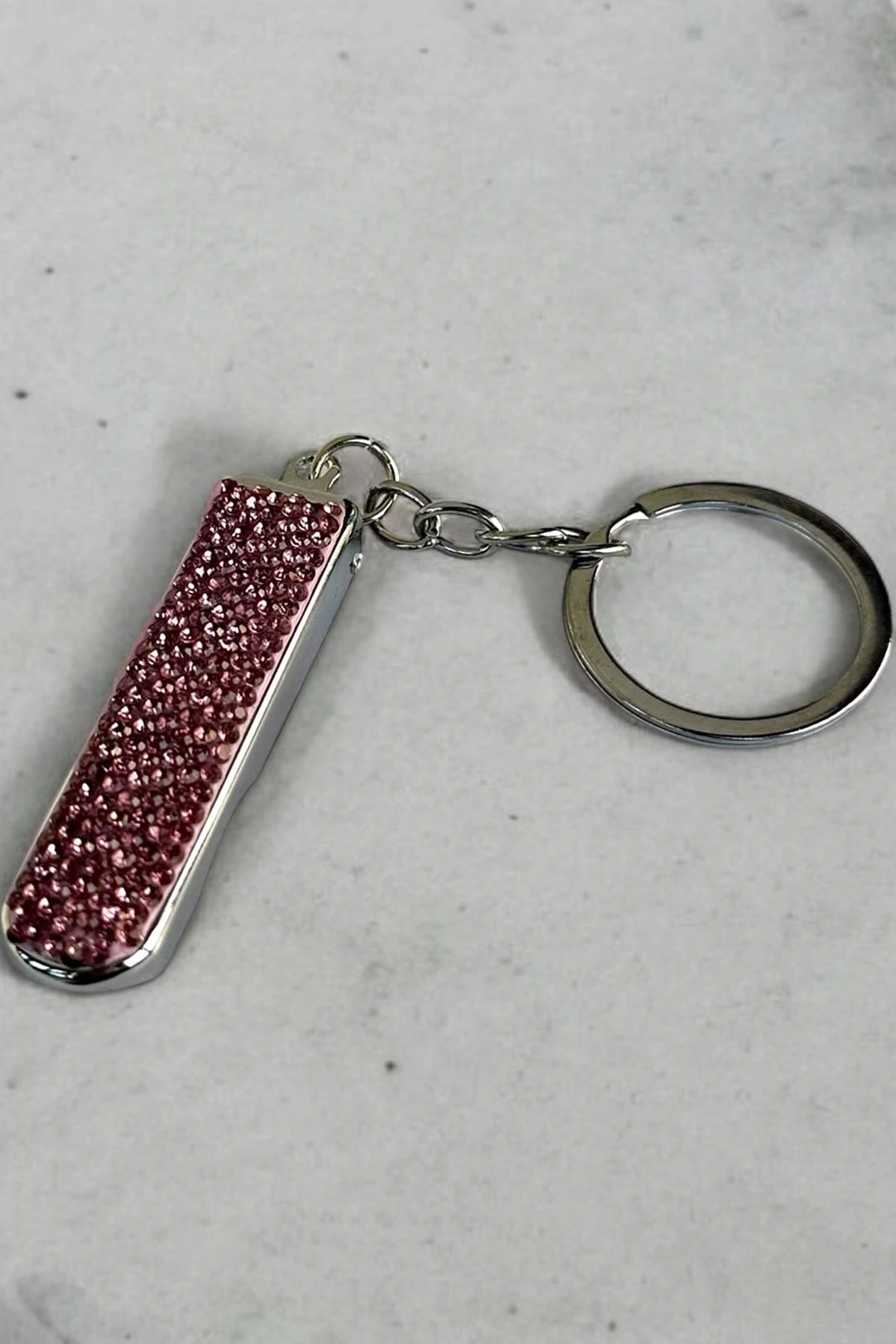 Gümüş Renk Pembe Taş Detaylı Tırnak Makaslı Anahtarlık