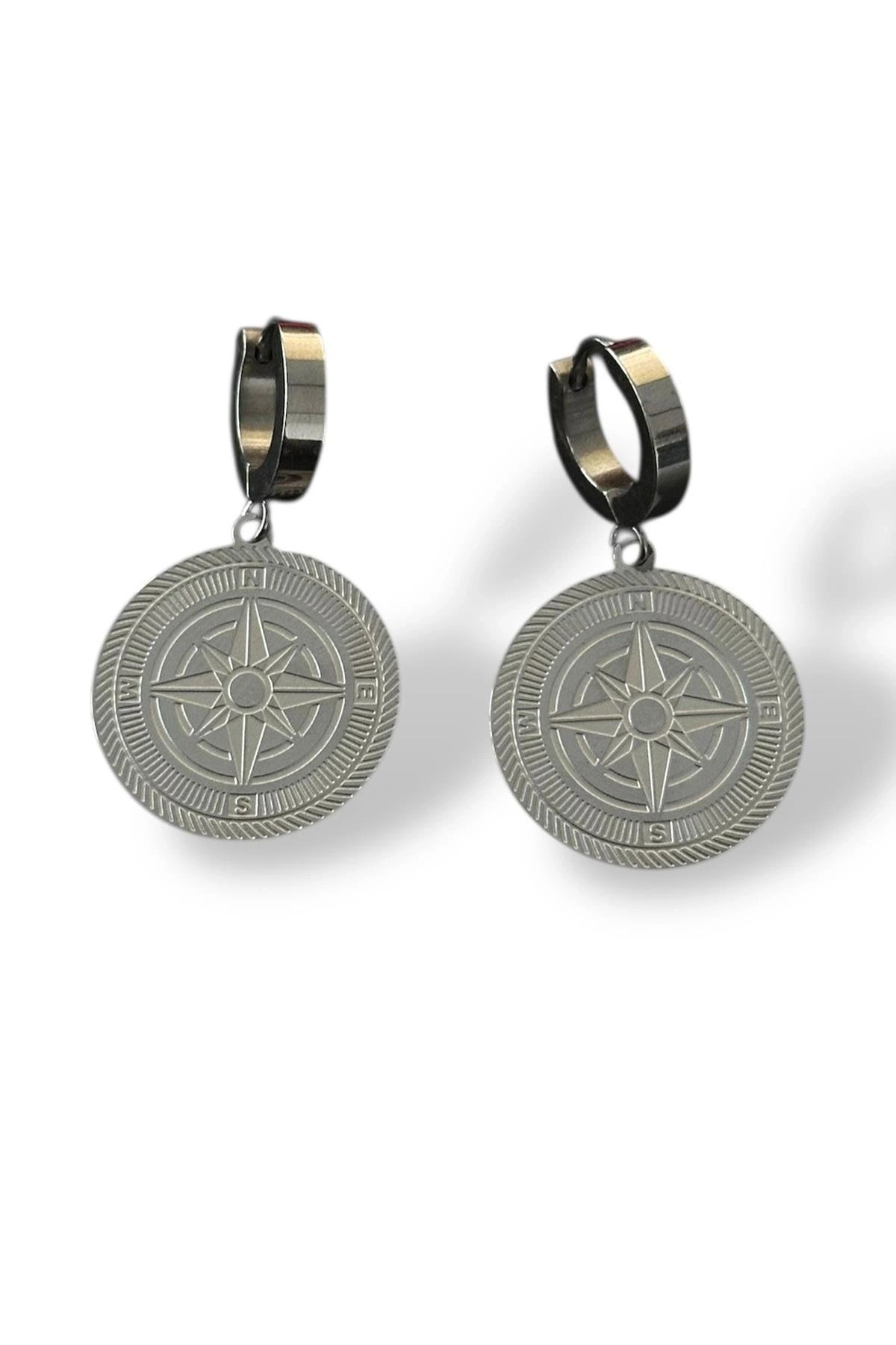 Gümüş Renk Pusula Figürlü Çelik Küpe (Çift)