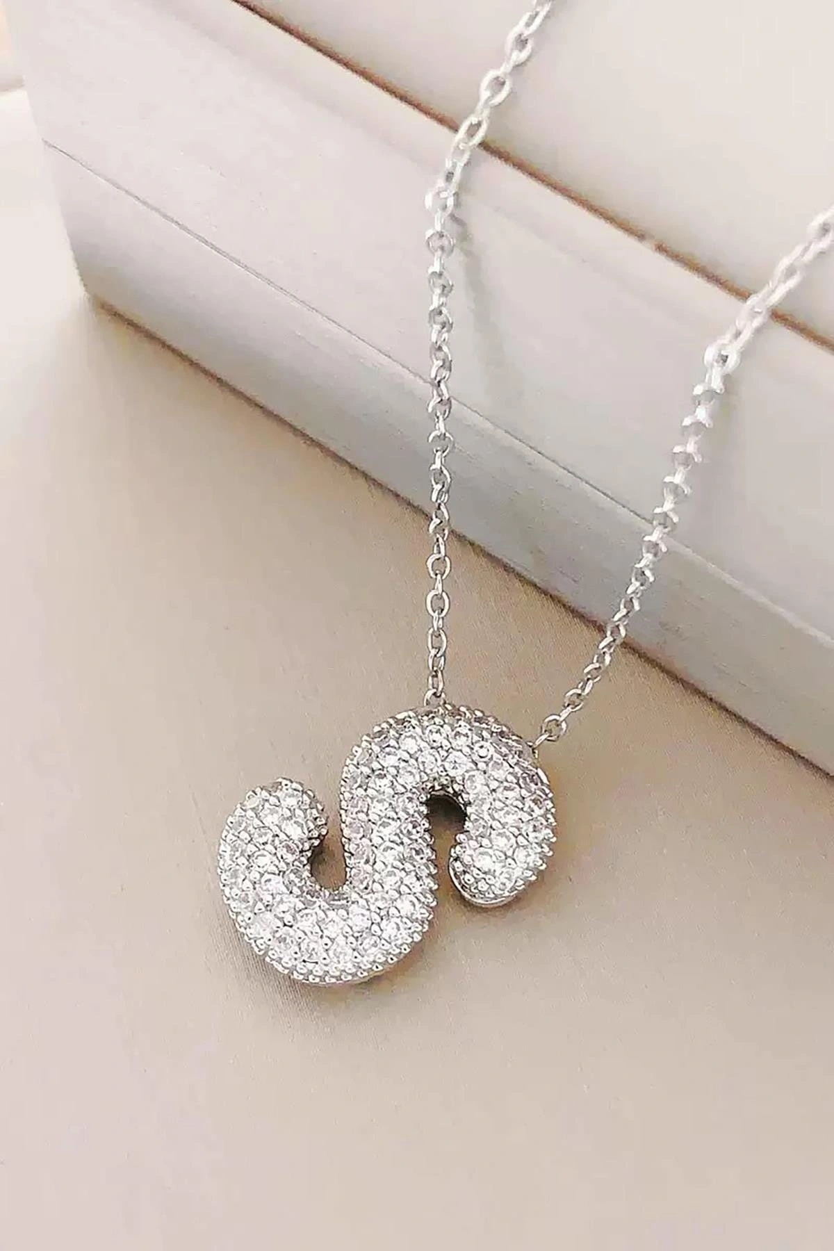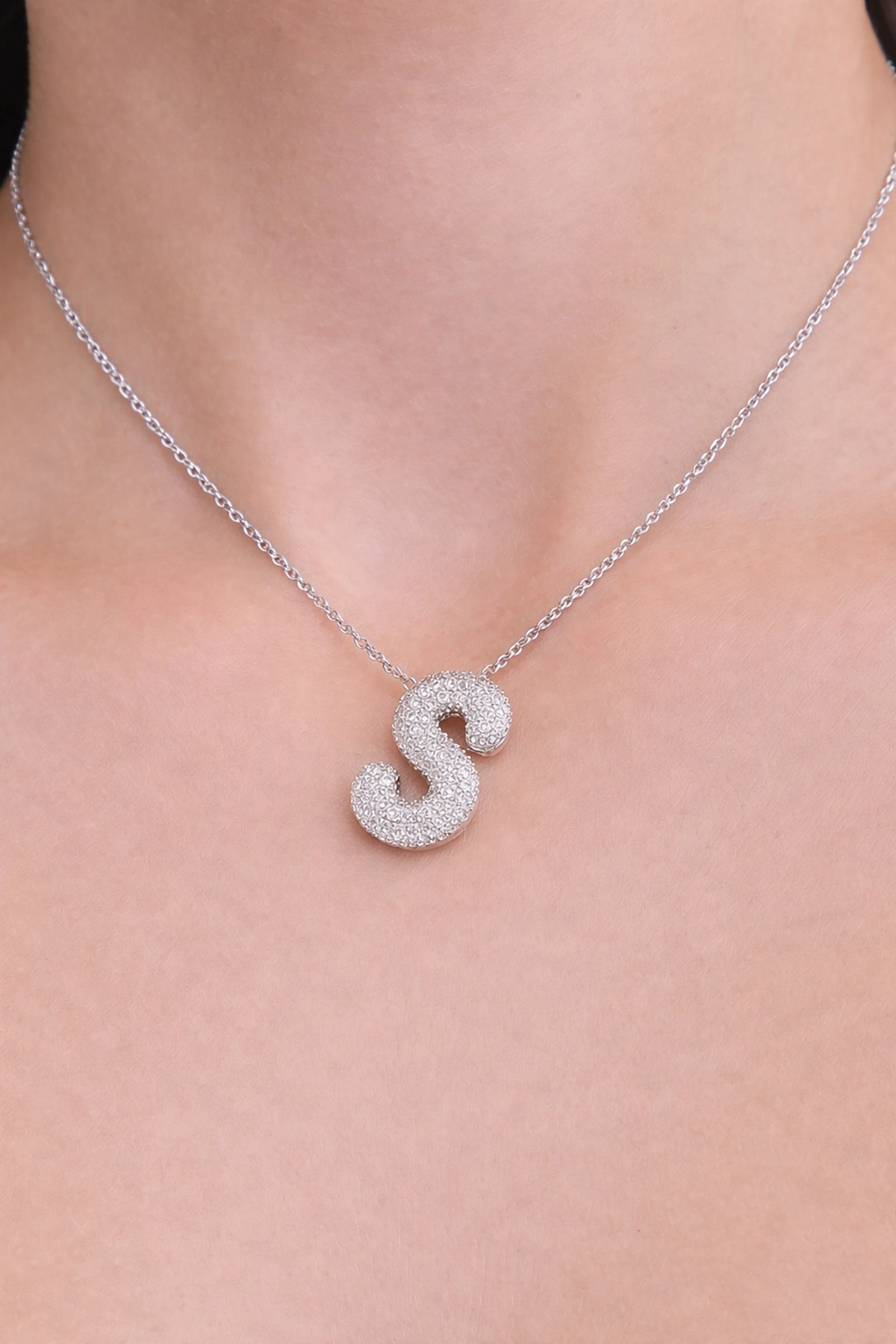 Gümüş Renk S Harf Taş Detaylı Çelik Kolye