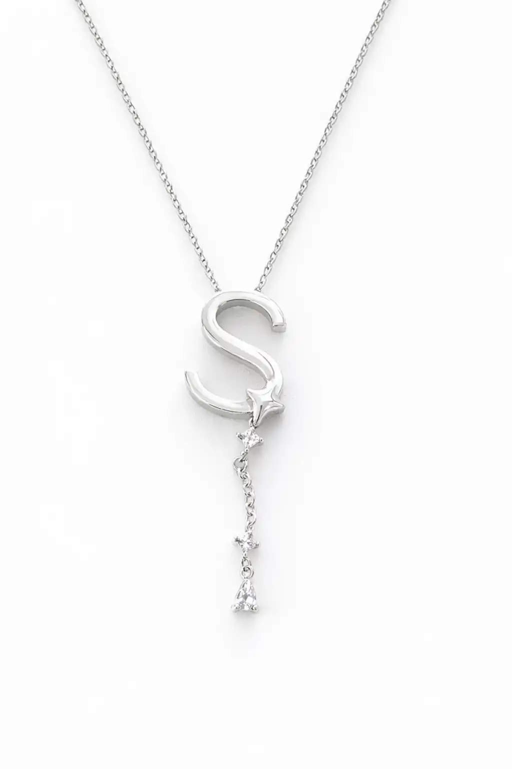 Gümüş Renk S Harfli Taş Detaylı Çelik Kolye
