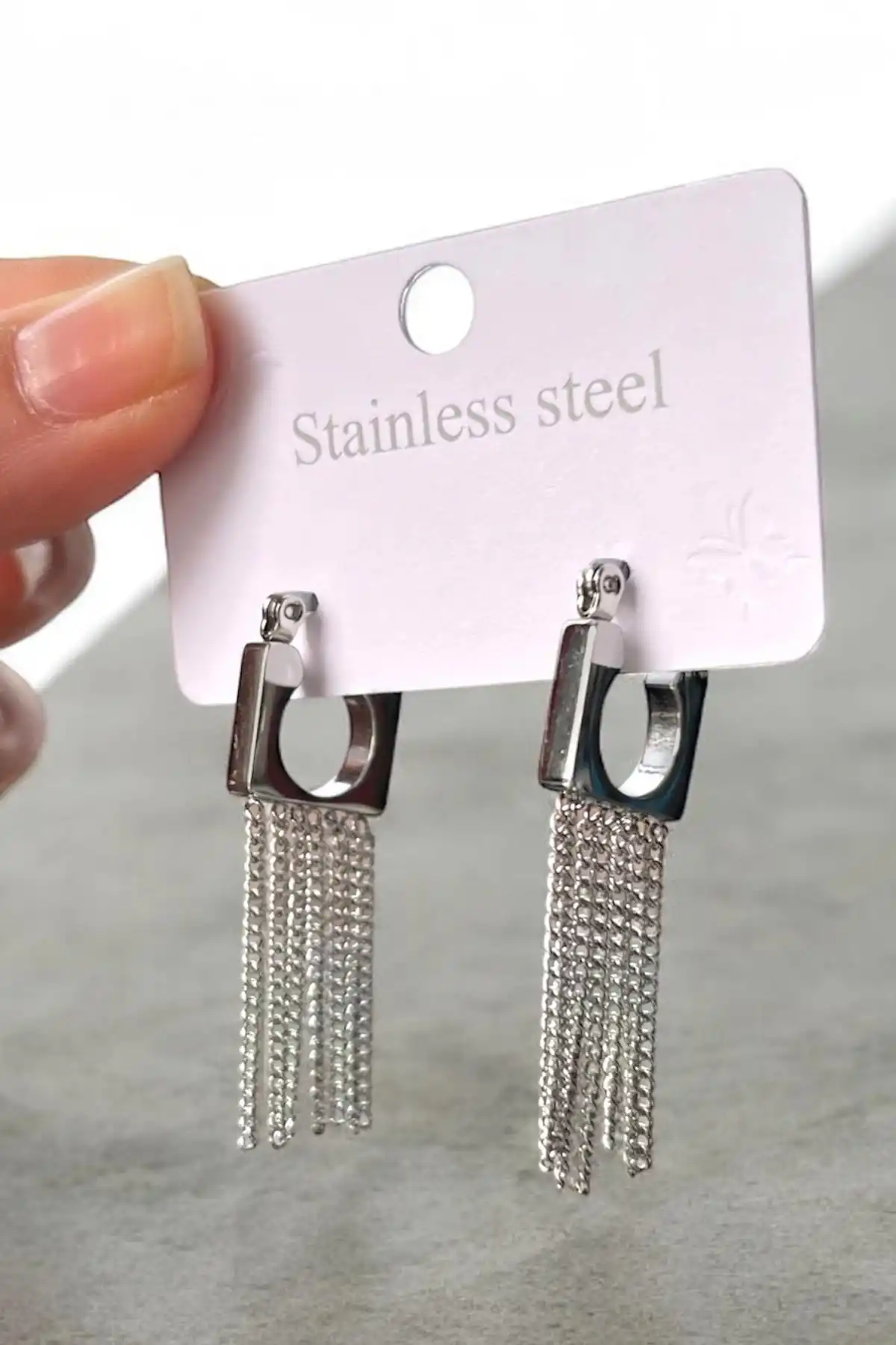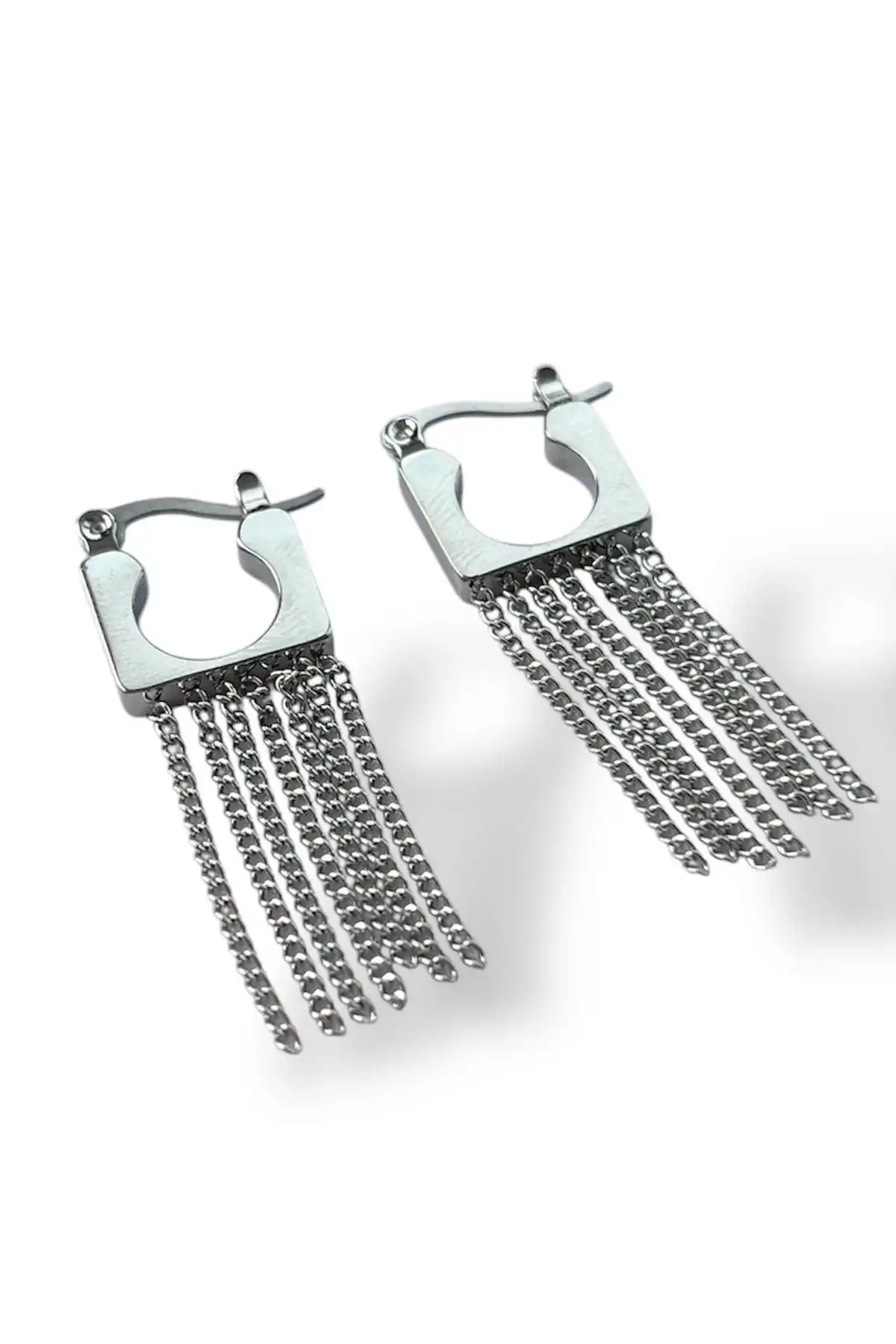 Gümüş Renk Sallantılı Çelik Küpe (Çift)