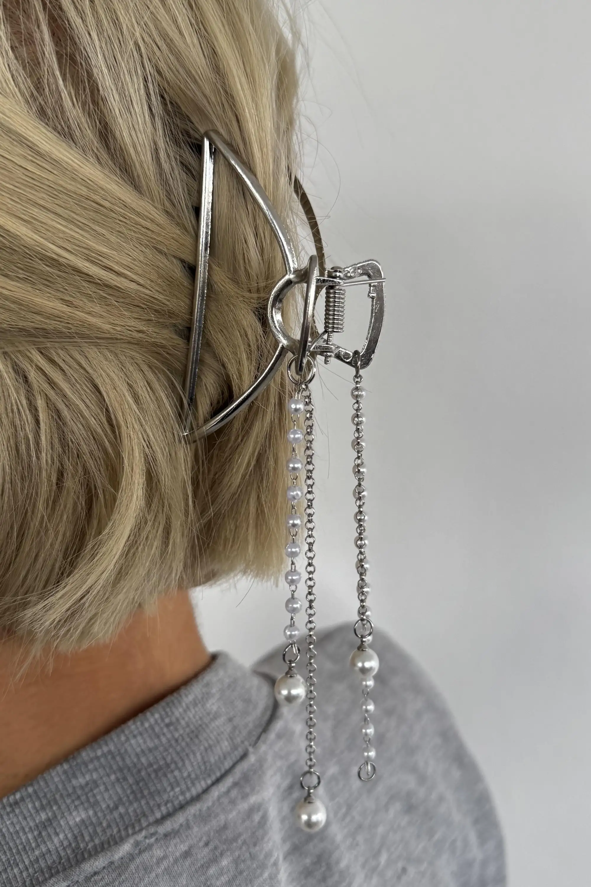 Gümüş Renk İnci Detaylı Mini Metal Mandal Toka