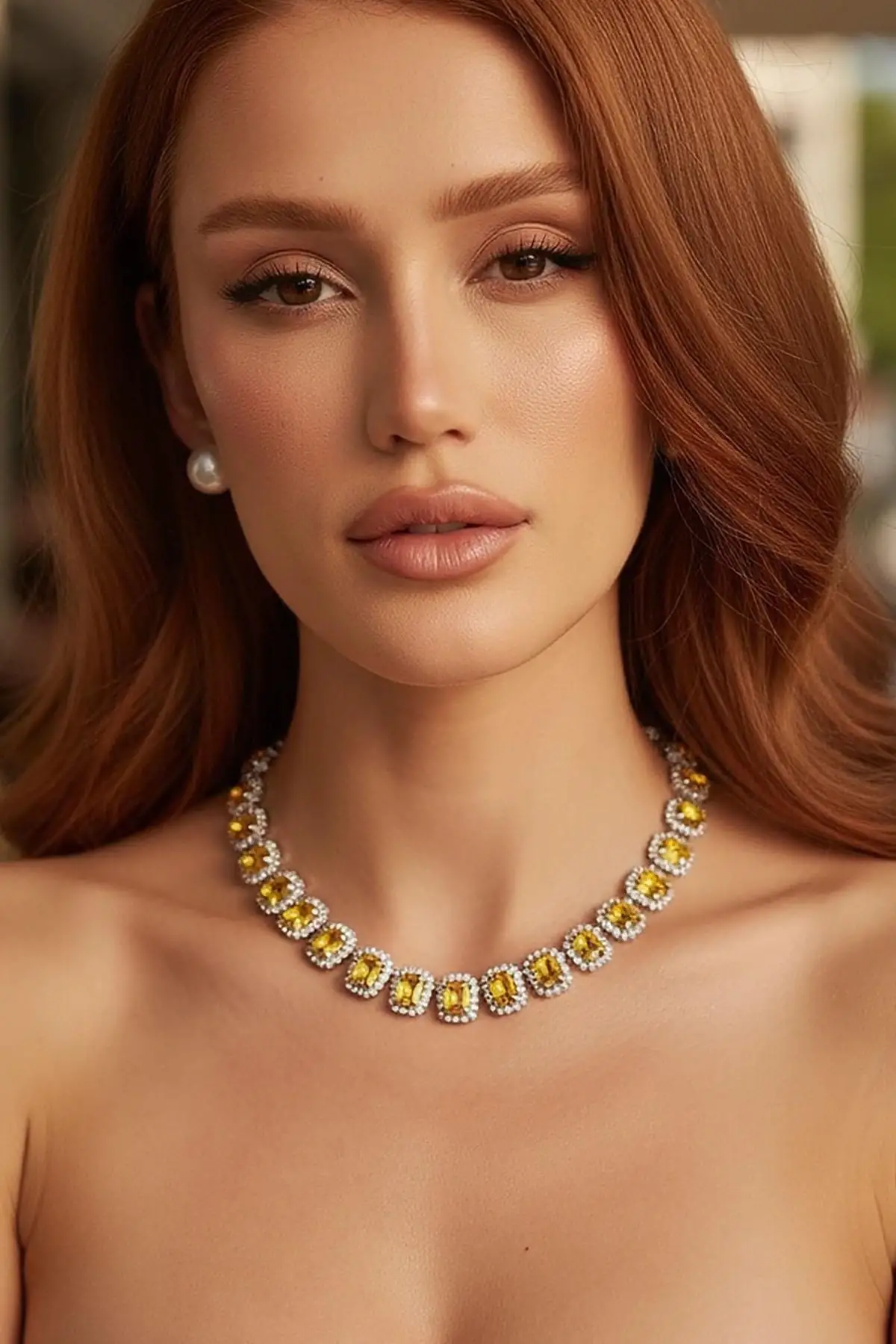 Altın Renk Sarı Taş Detaylı Tasarım Abiye Kolye