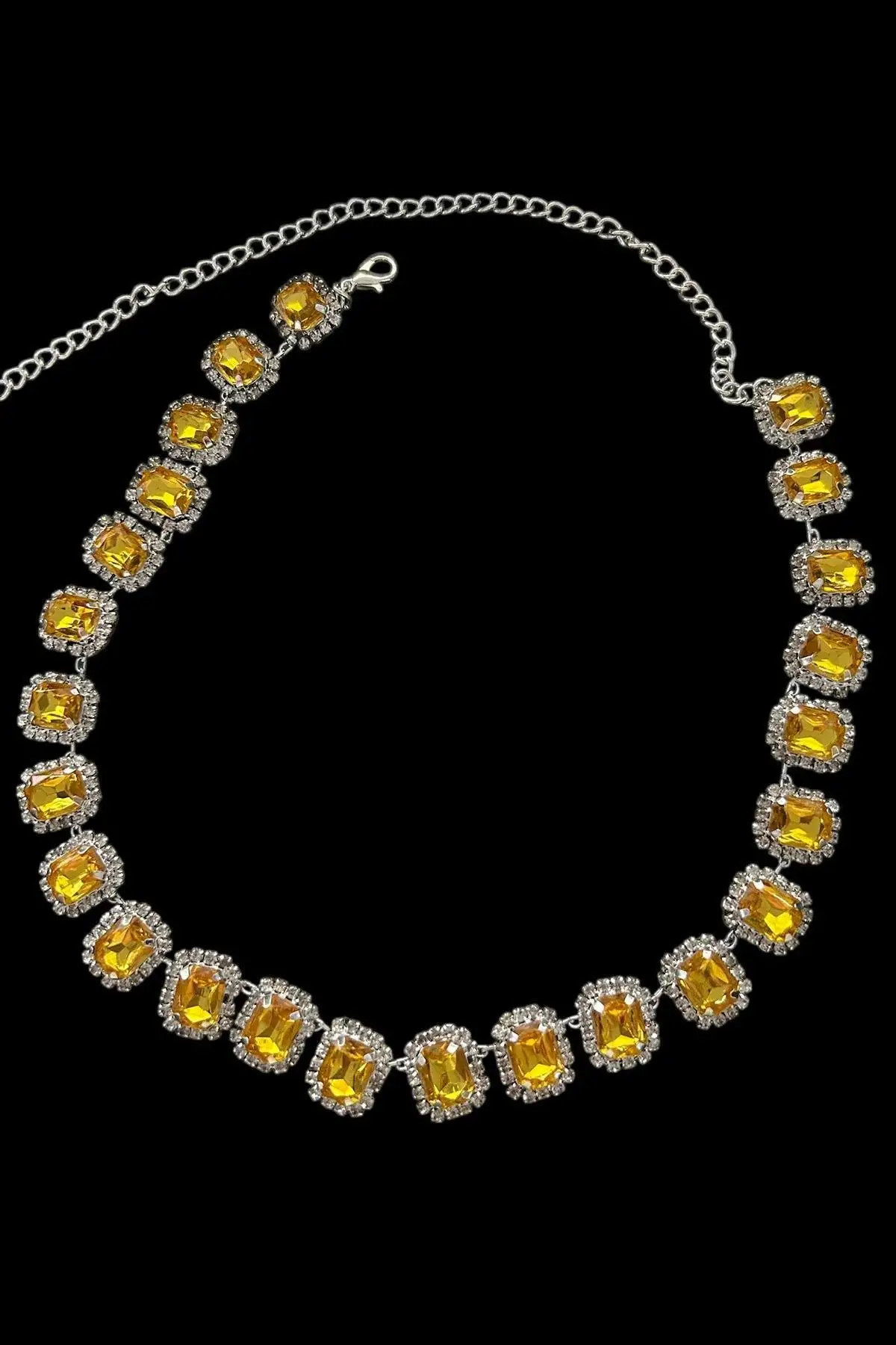 Gümüş Renk Sarı Taş Detaylı Tasarım Abiye Kolye