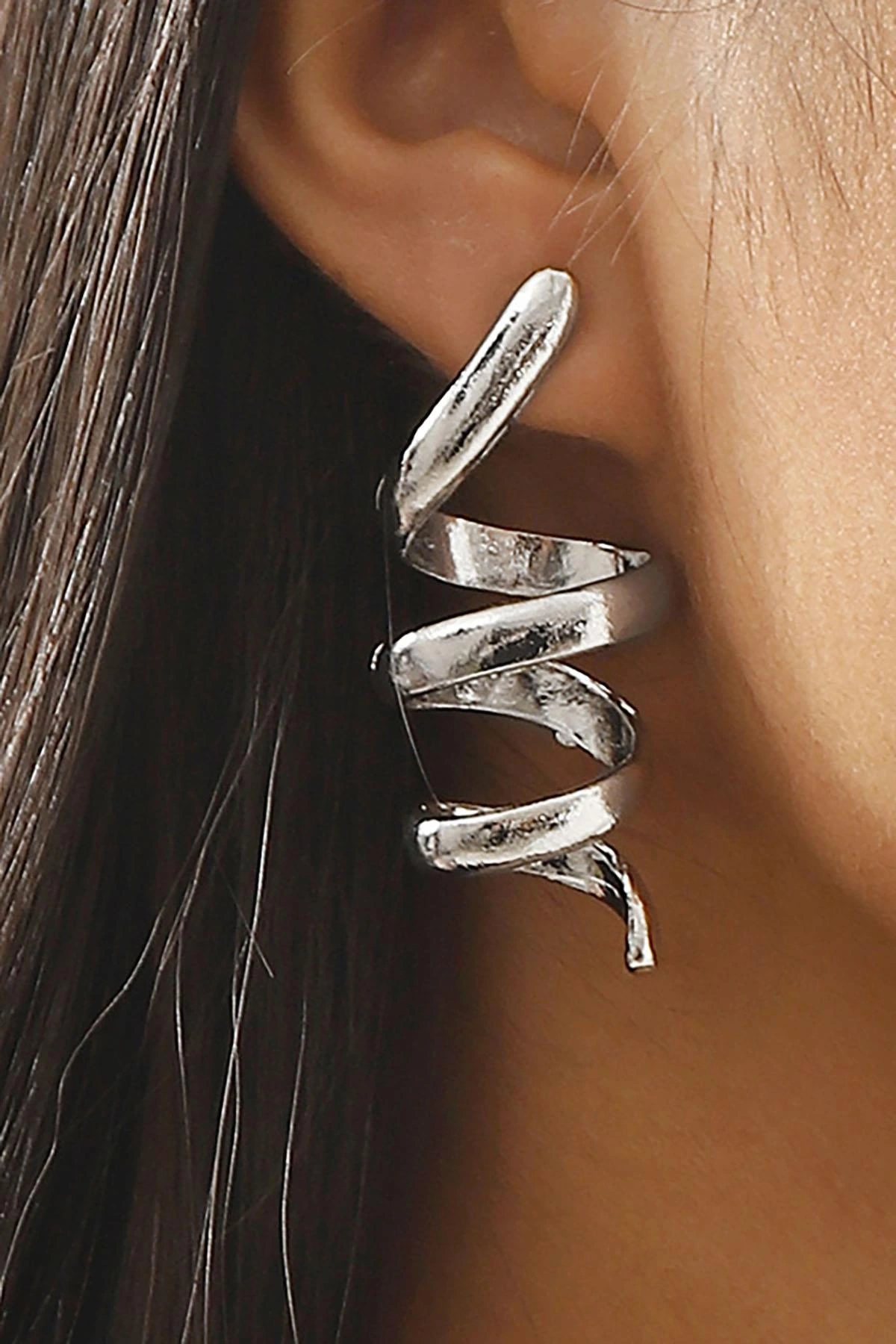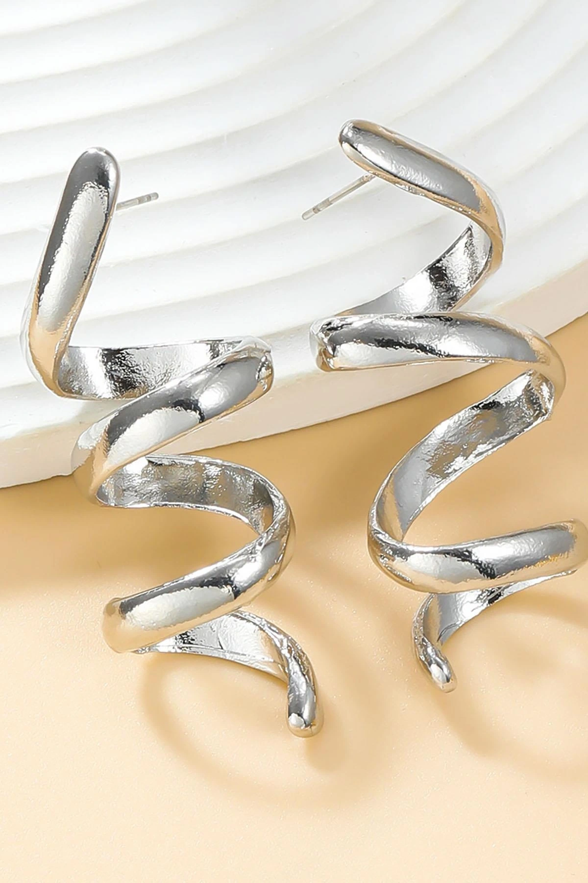Gümüş Renk Sarmal Çelik Küpe (Çift)