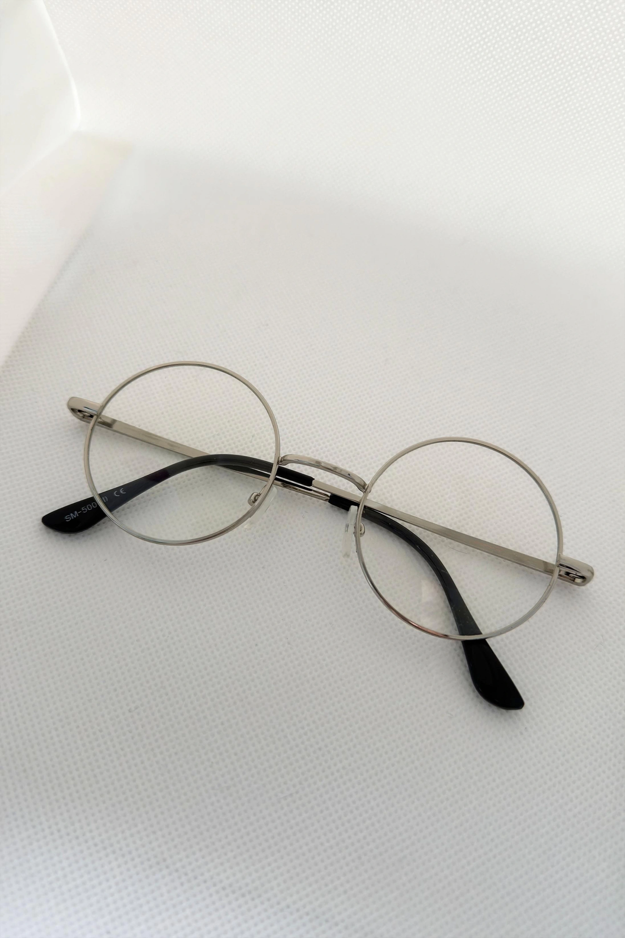 Gümüş Renk Şeffaf Yuvarlak Kadın Gözlük