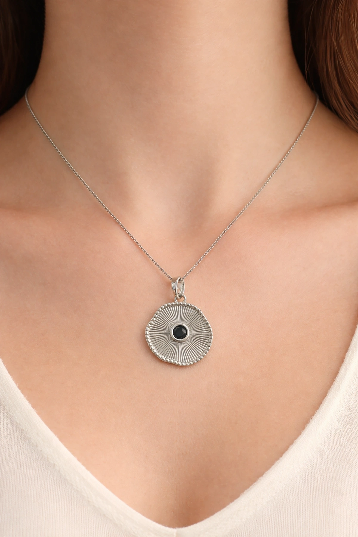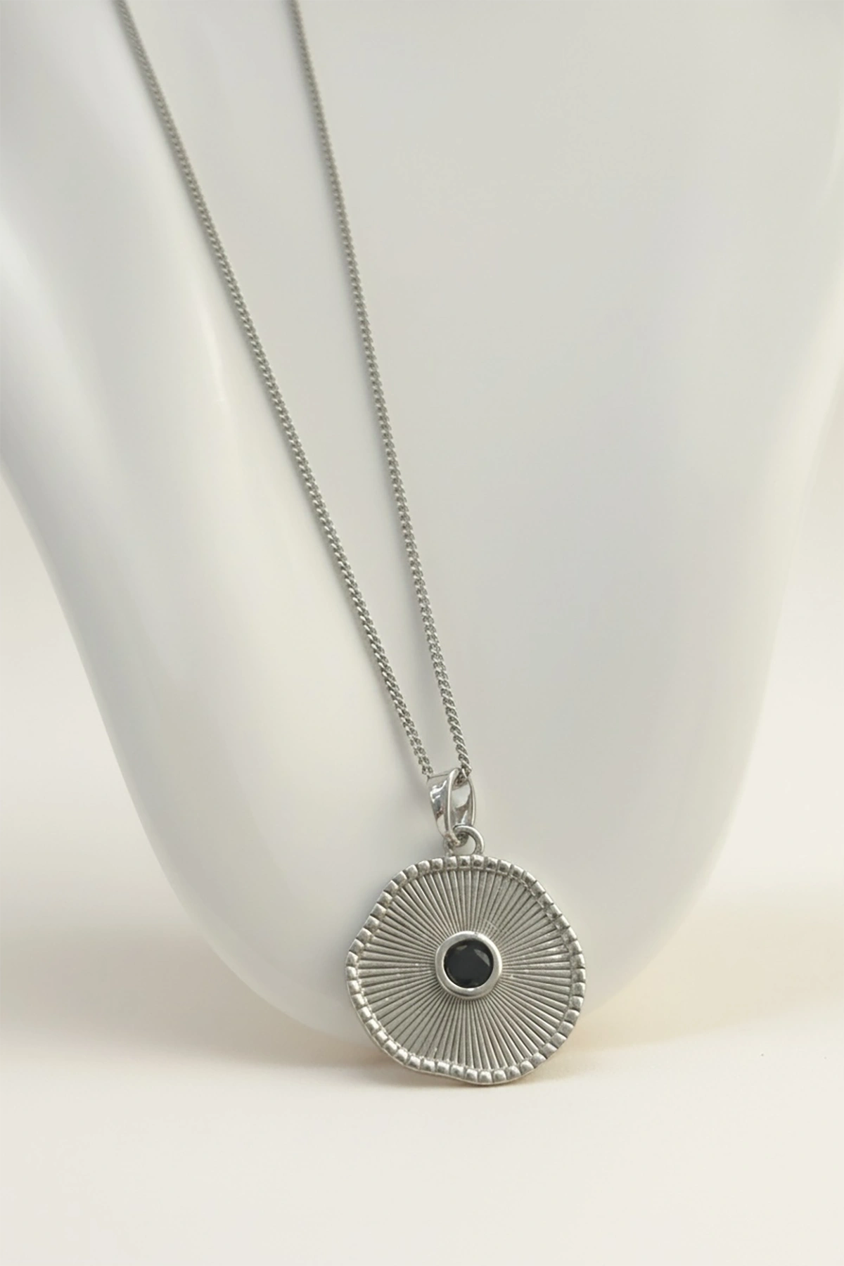Gümüş Renk Siyah Taş Detaylı Çelik Kolye