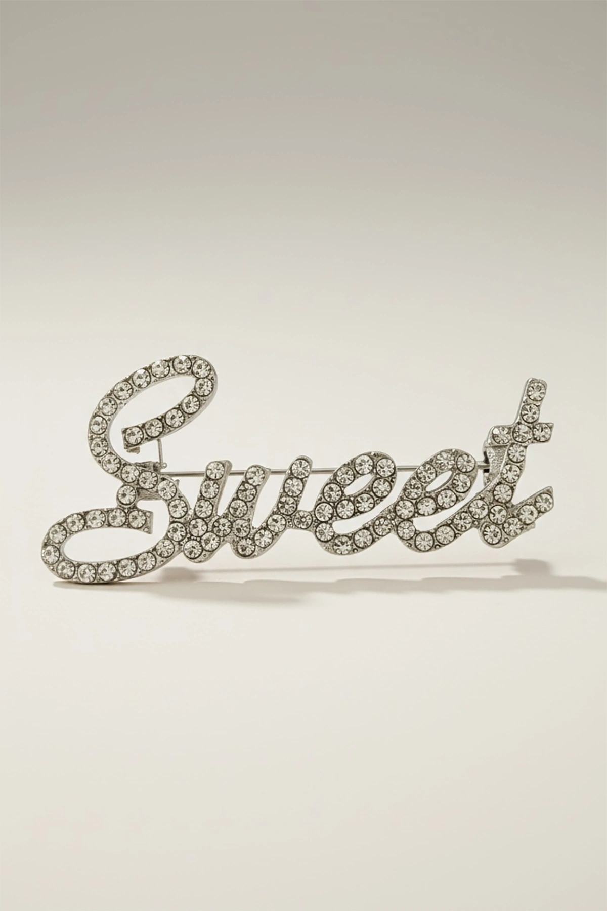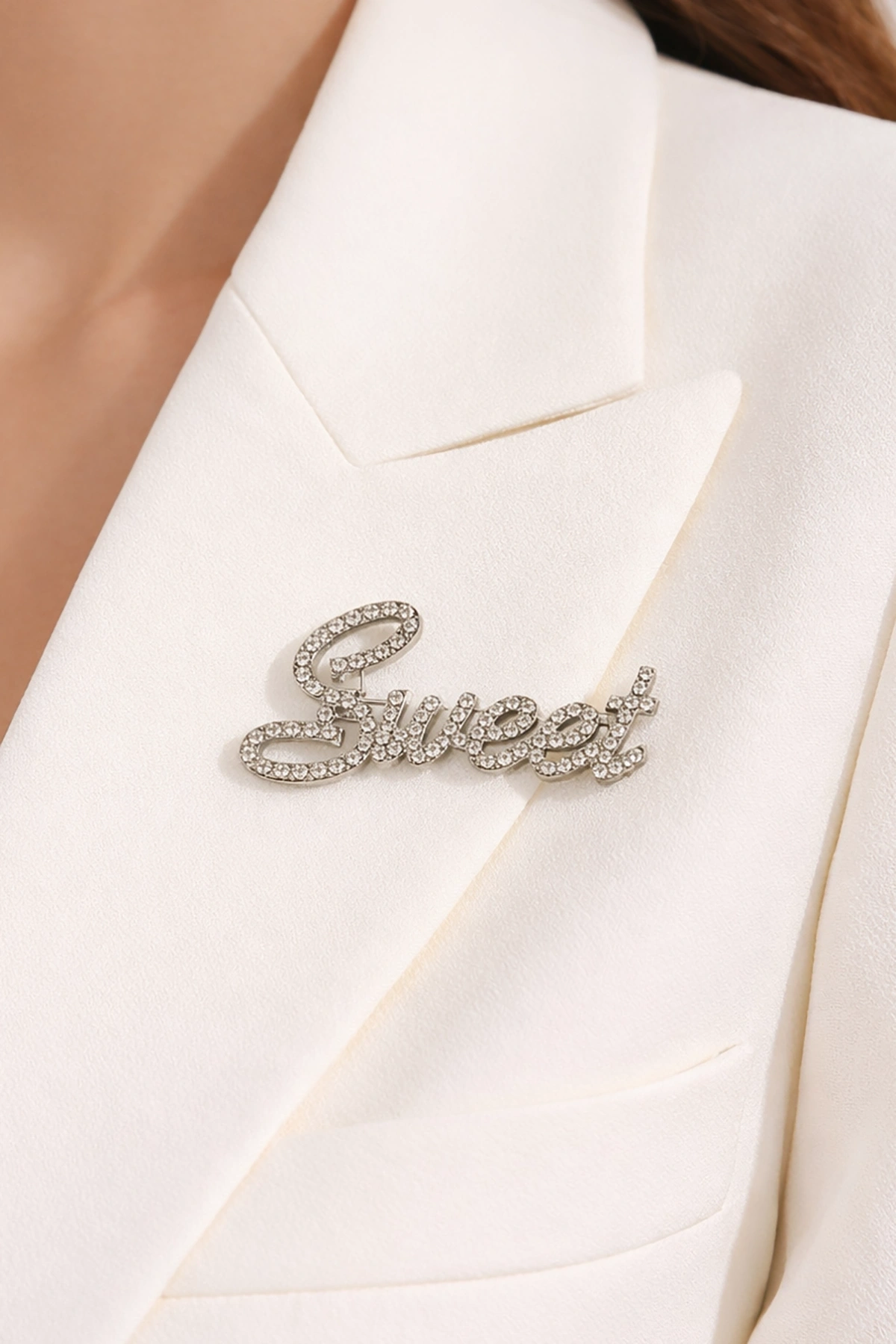 Gümüş Renk Sweet Yazılı Taşlı Broş