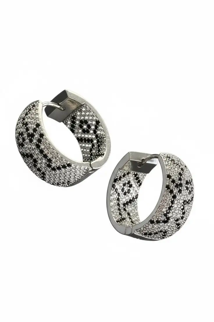Gümüş Renk Taş Detaylı 14K Altın Kaplama TX Halka Küpe (Çift)