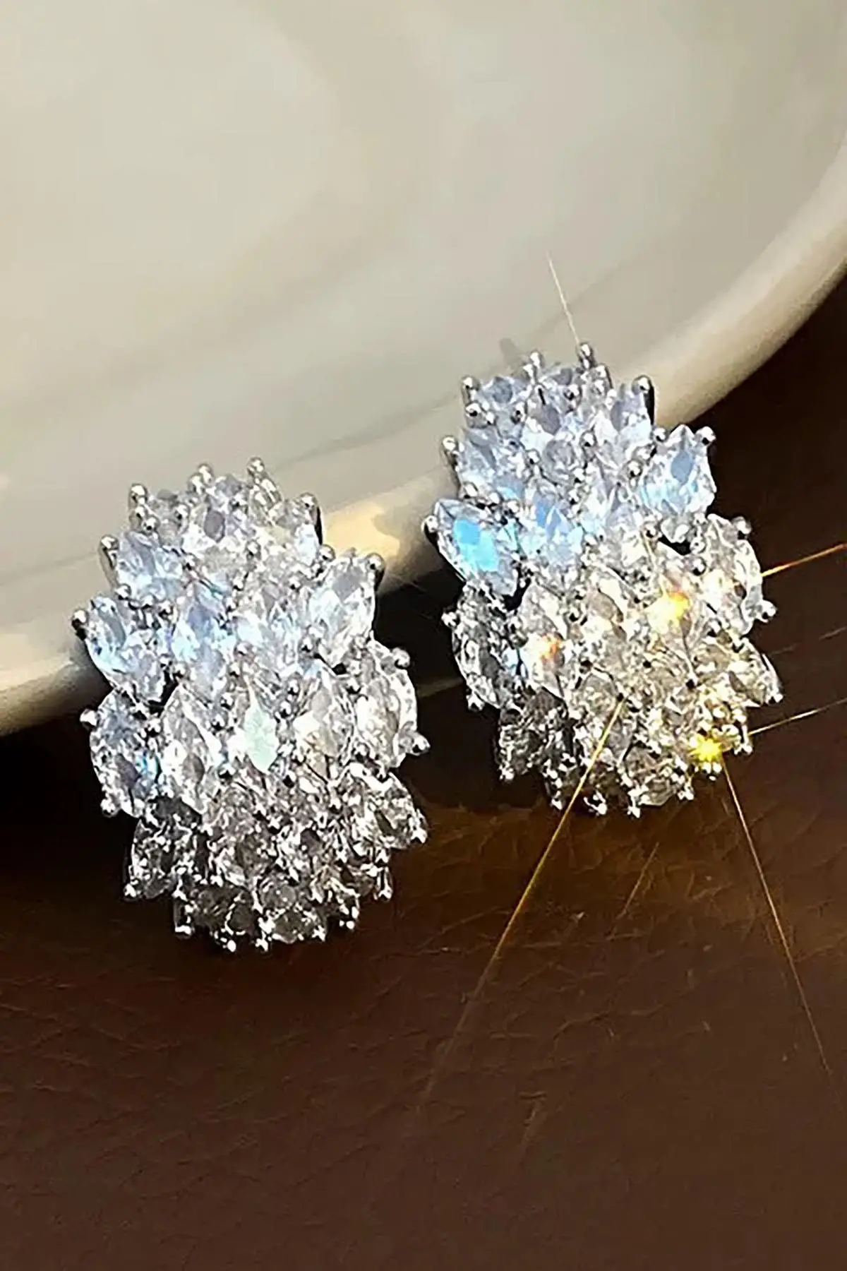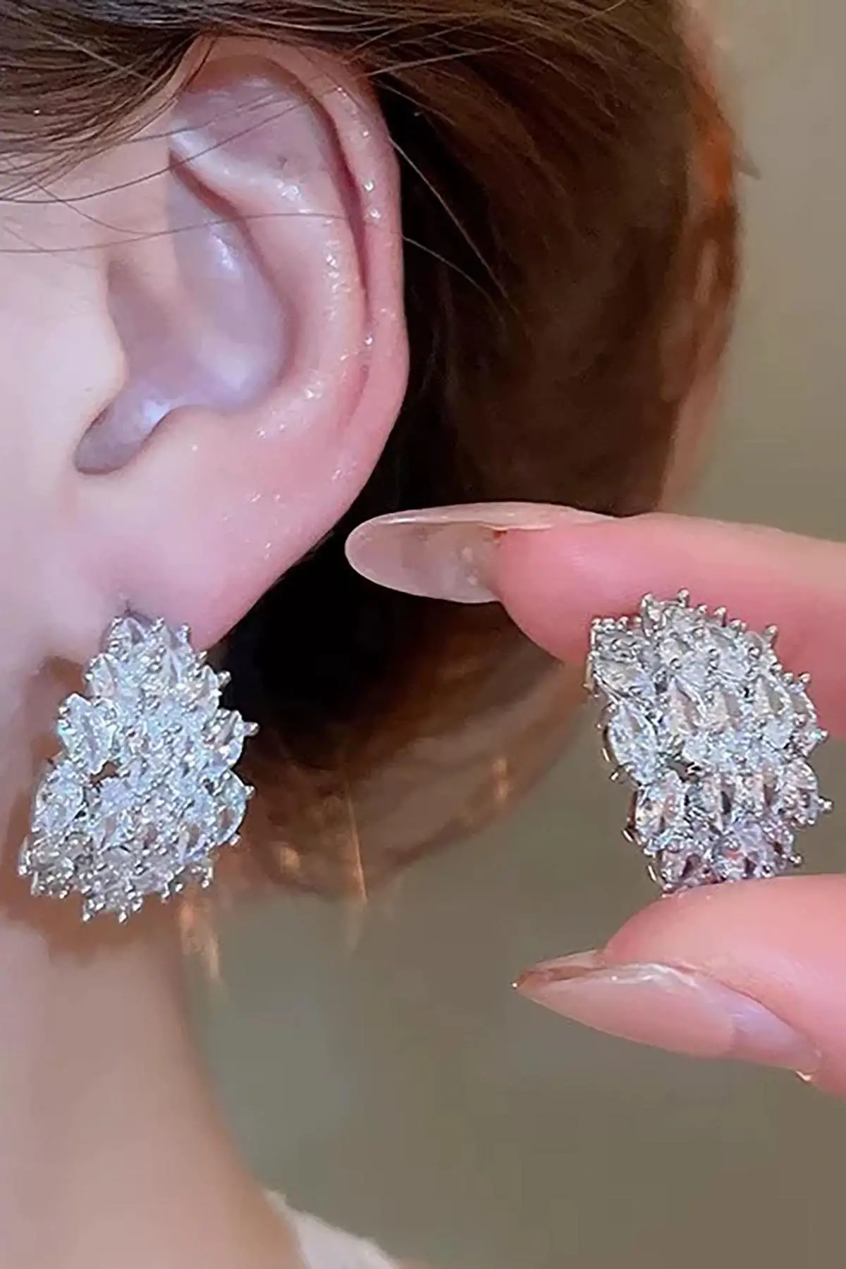 Gümüş Renk Taş Detaylı Küpe (Çift)