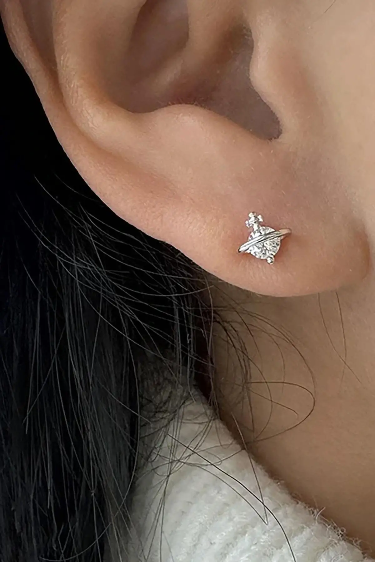 Gümüş Renk Kalp Figürlü Taş Detaylı 14K Altın Kaplama Küpe (Çift)