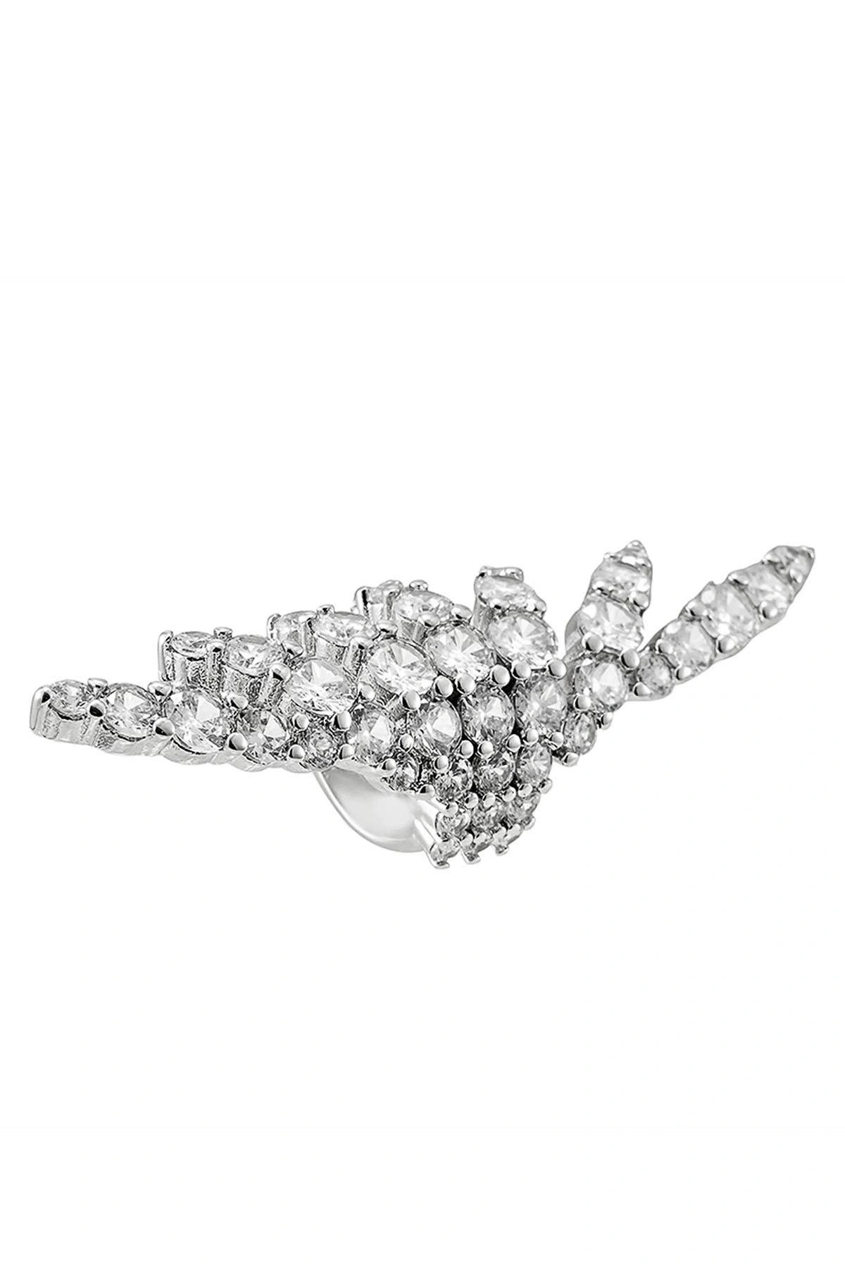 Gümüş Renk Taş Detaylı 14K Altın Kaplama TX Ear Cuff (Tek)