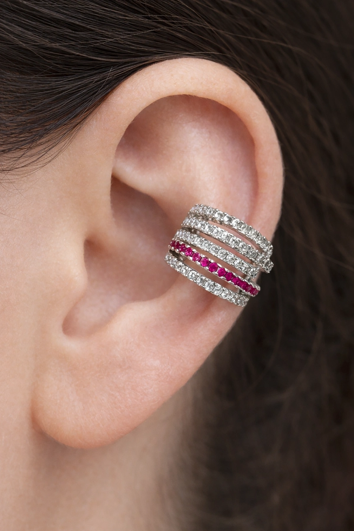 - Zarif tasarımıyla dikkat çeken bu kulak aksesuarı, gümüş rengi detaylarıyla göz alıcı bir görünüm sunar.