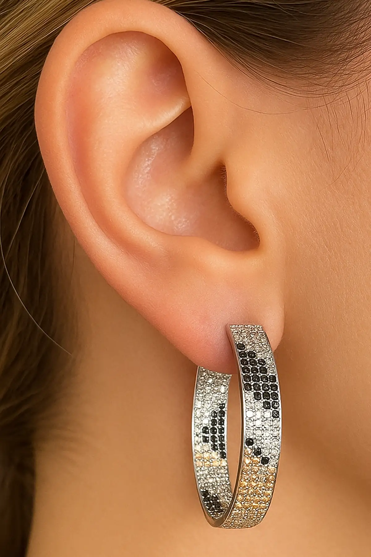 Altın Ve Gümüş Renk Halka Küpe (Çift)