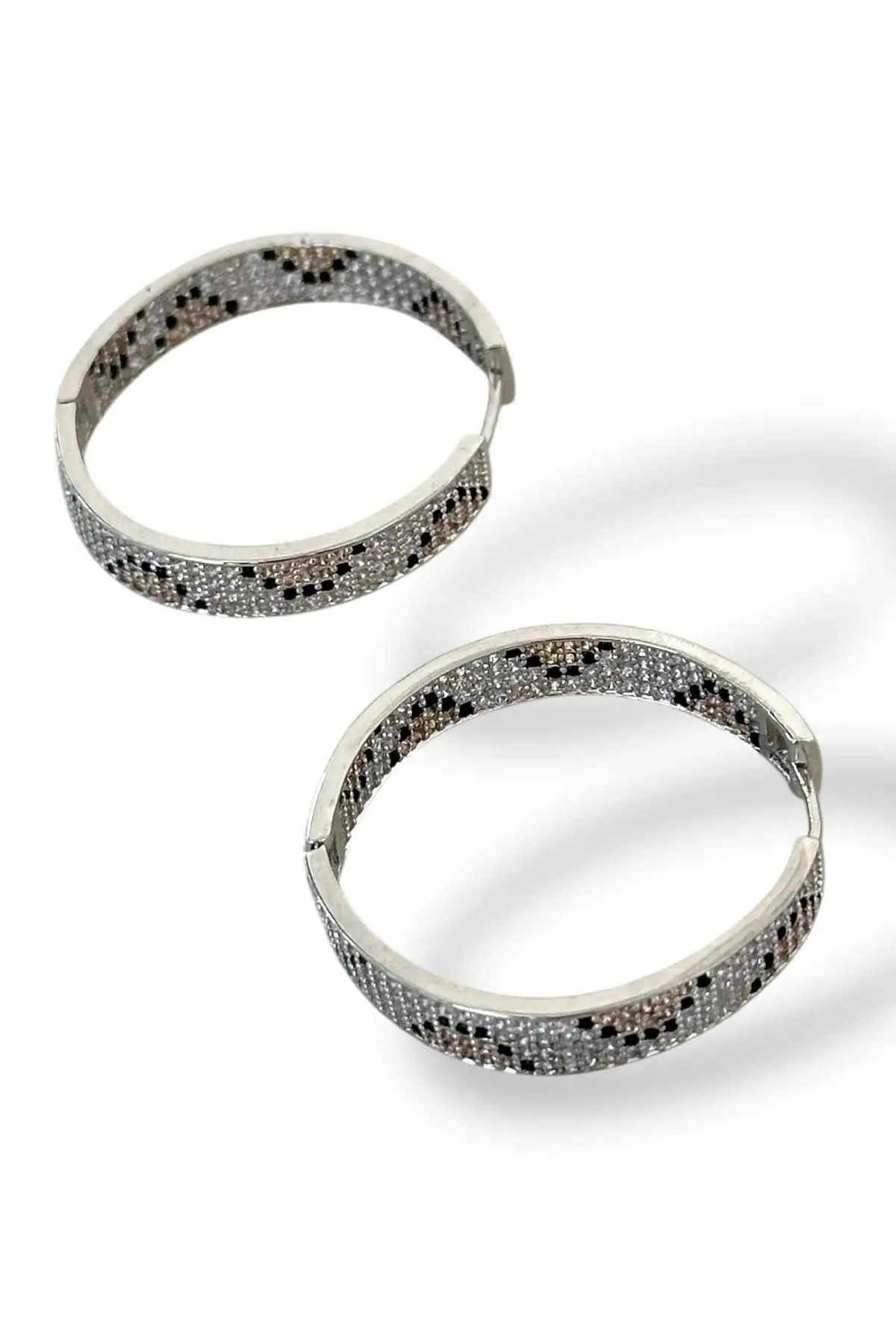 Gümüş Renk Taş Detaylı 14K Altın Kaplama TX Halka Küpe (Çift)
