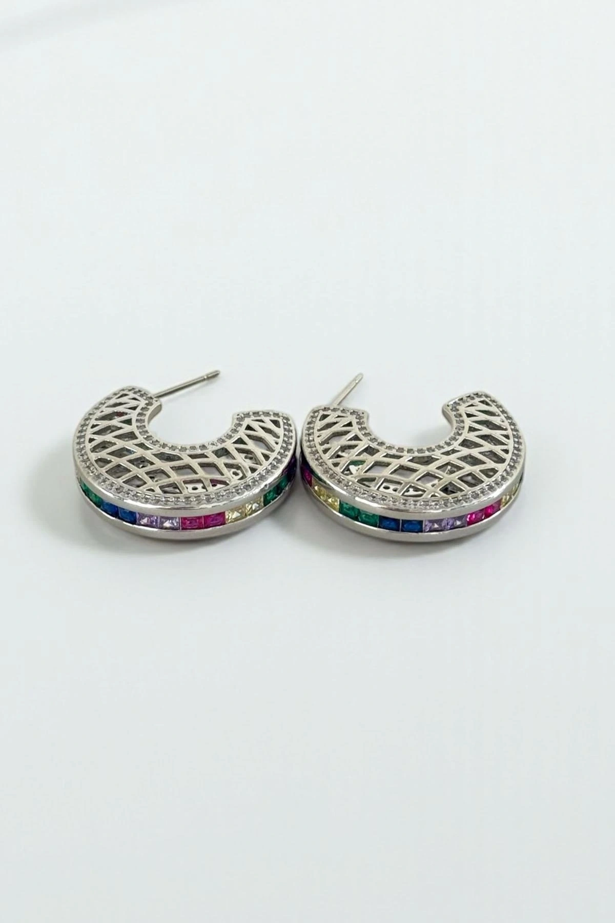Gümüş Renk Taş Detaylı 14K Altın Kaplama TX Halka Küpe (Çift)