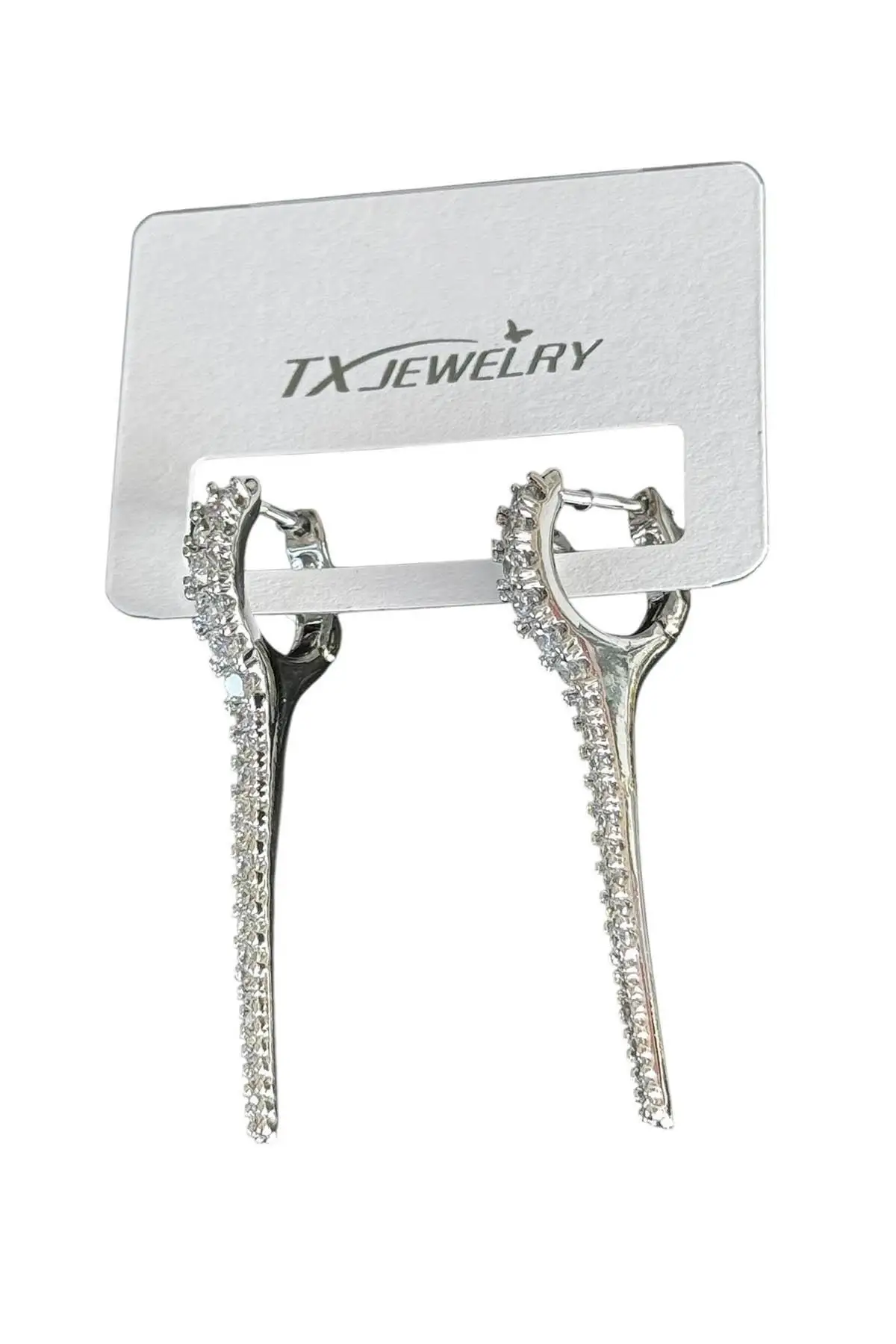 Gümüş Renk Taş Detaylı 14K Altın Kaplama TX Küpe (Çift)