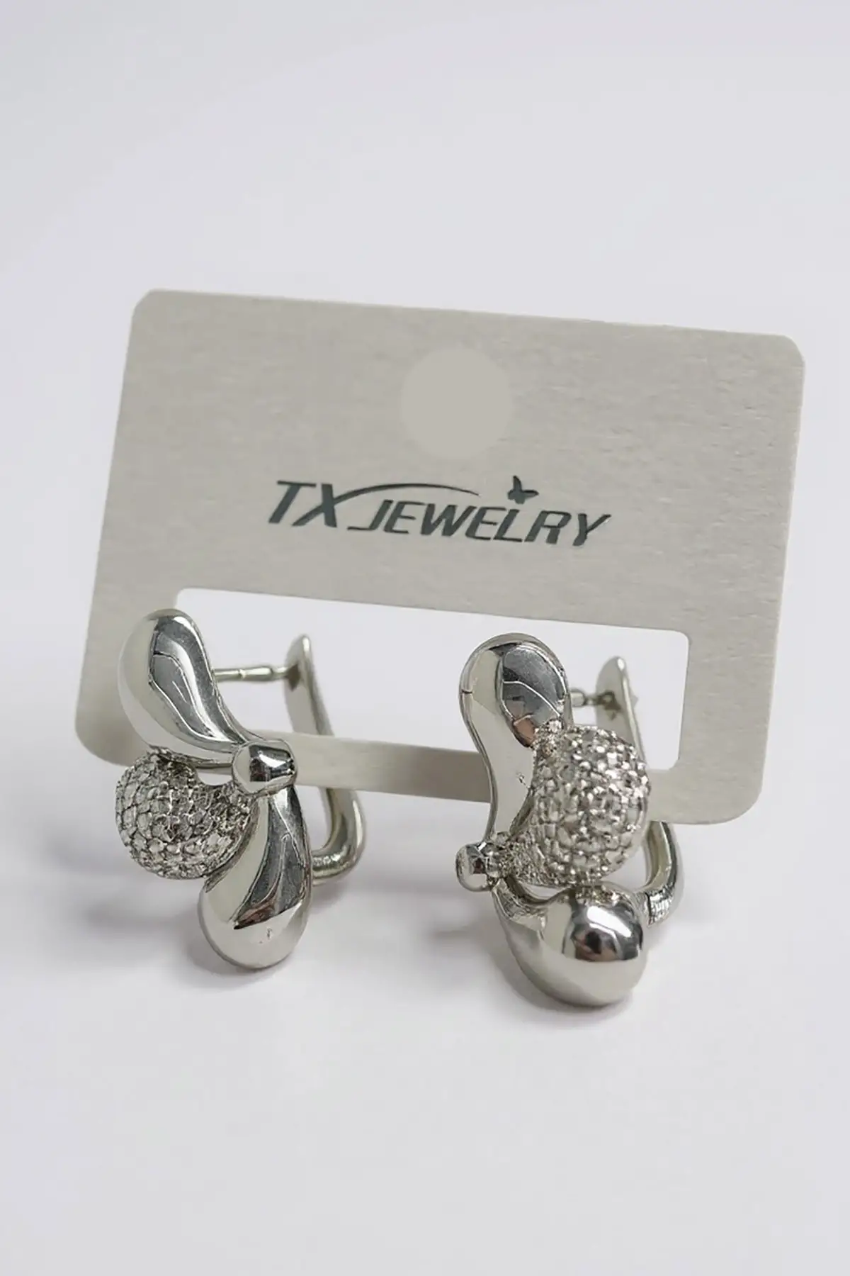 Gümüş Renk Taş Detaylı 14K Altın Kaplama TX Küpe (Çift)