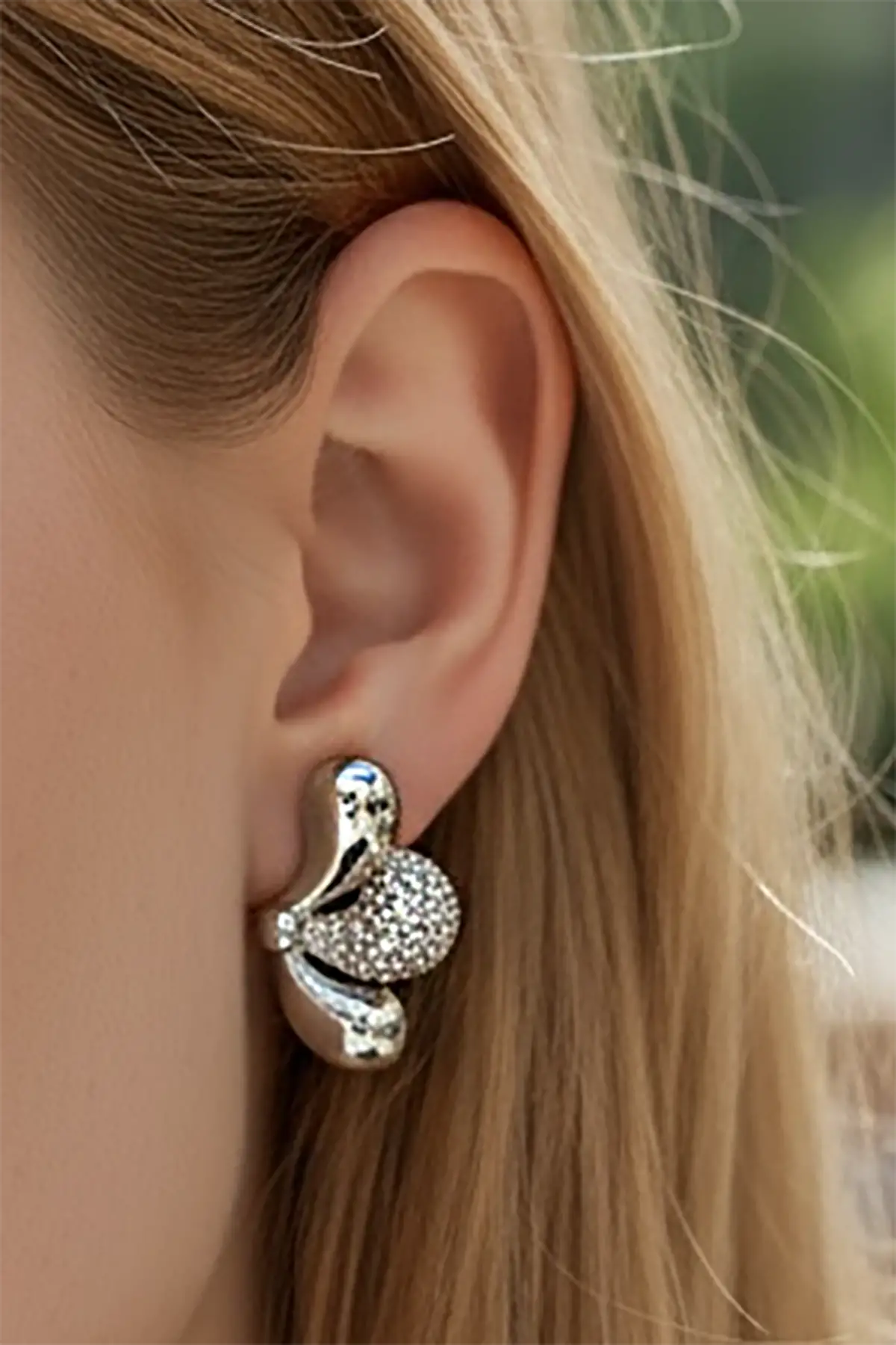 Gümüş Renk Taş Detaylı Küpe (Çift)