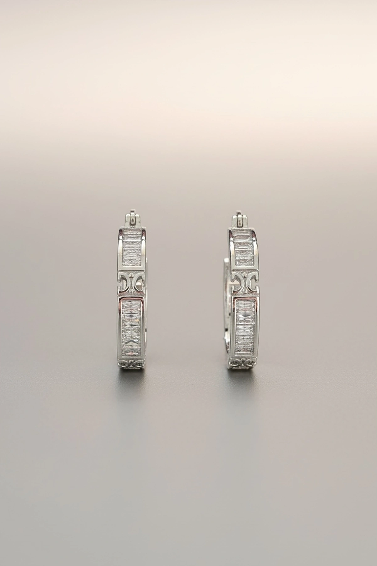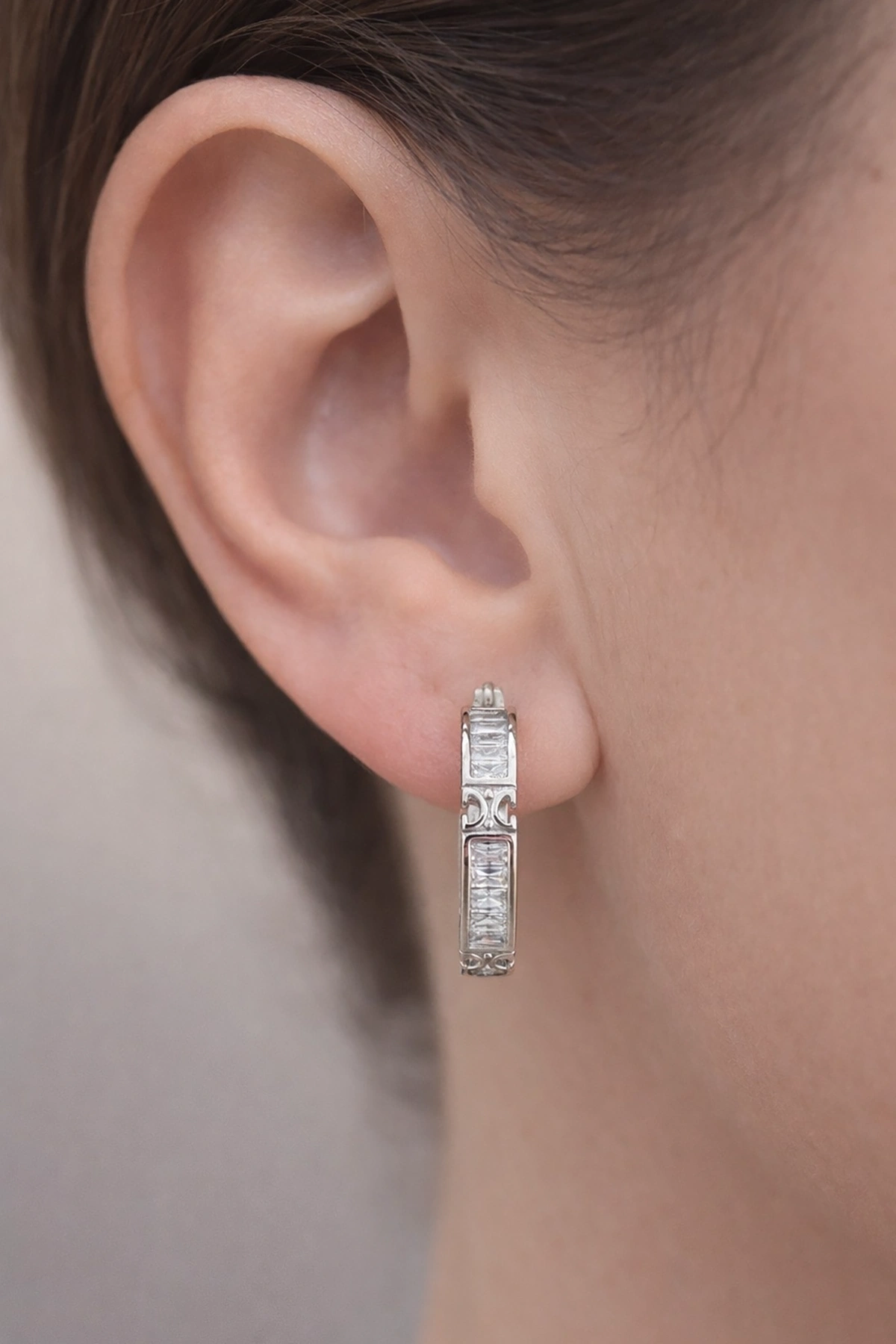 Gümüş Renk Taş Detaylı 14K Altın Kaplama Tx Küpe (Çift)