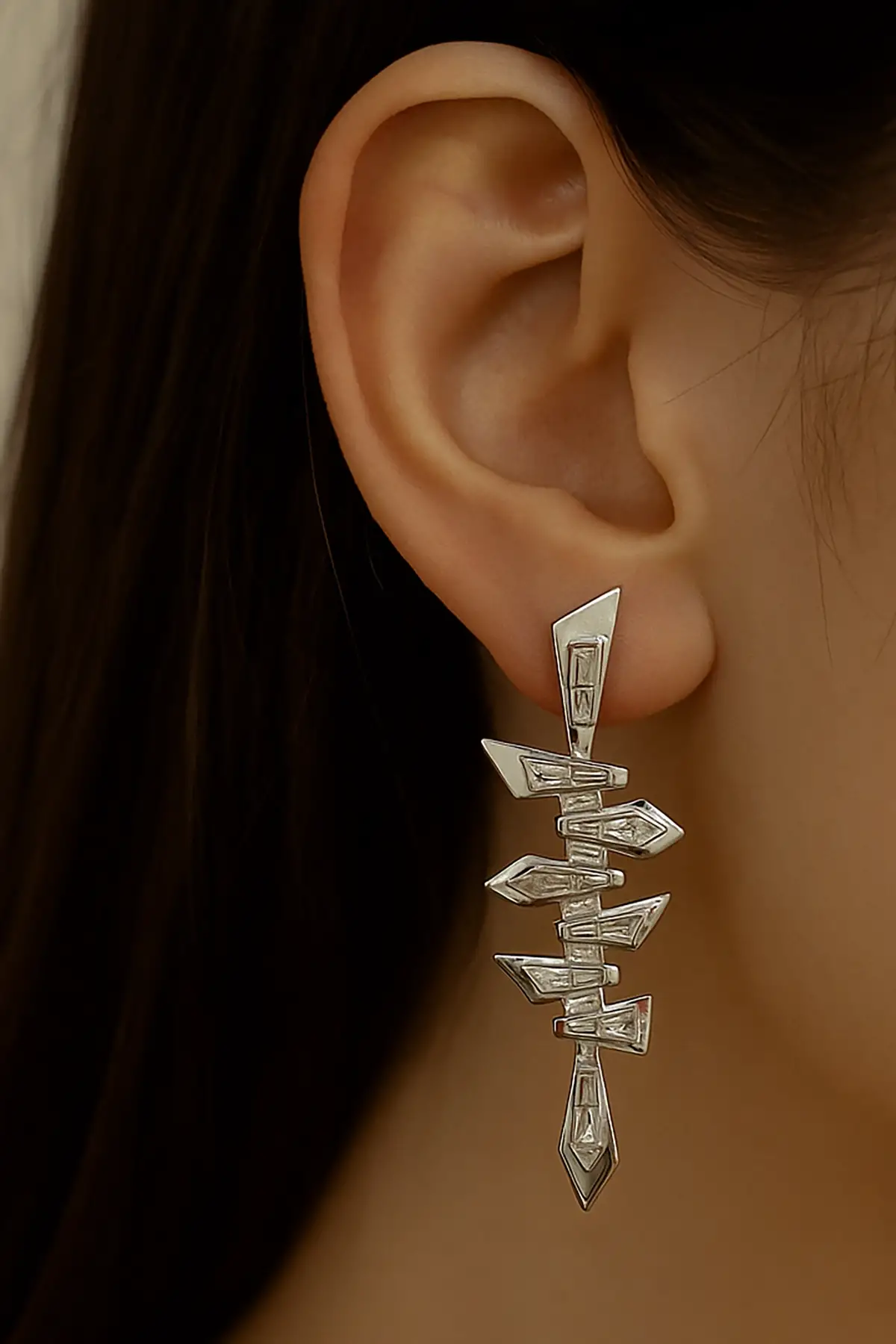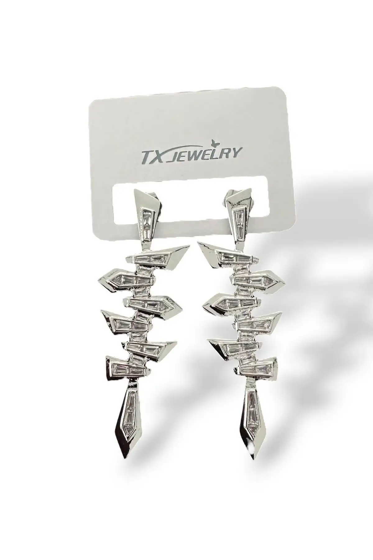 Gümüş Renk Taş Detaylı 14K Altın Kaplama TX Küpe (Çift)