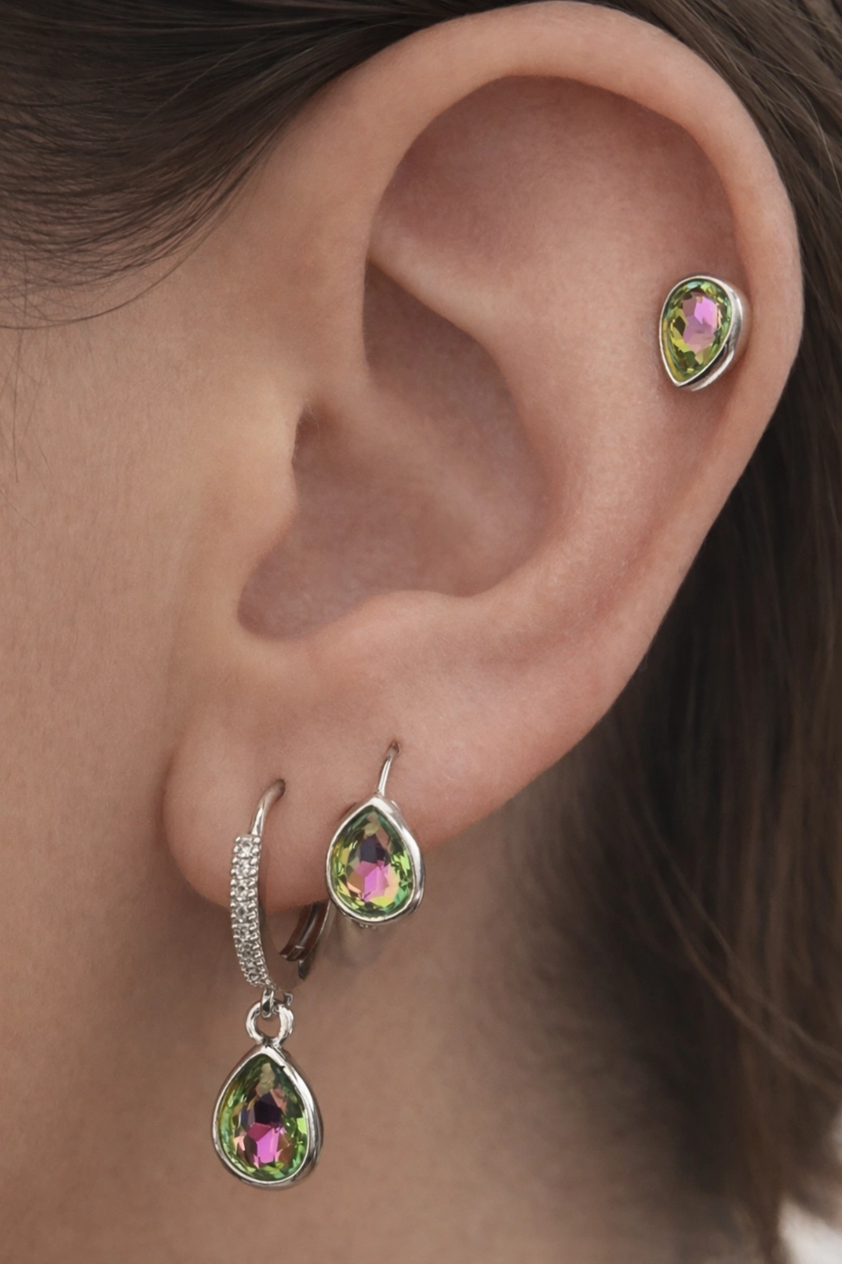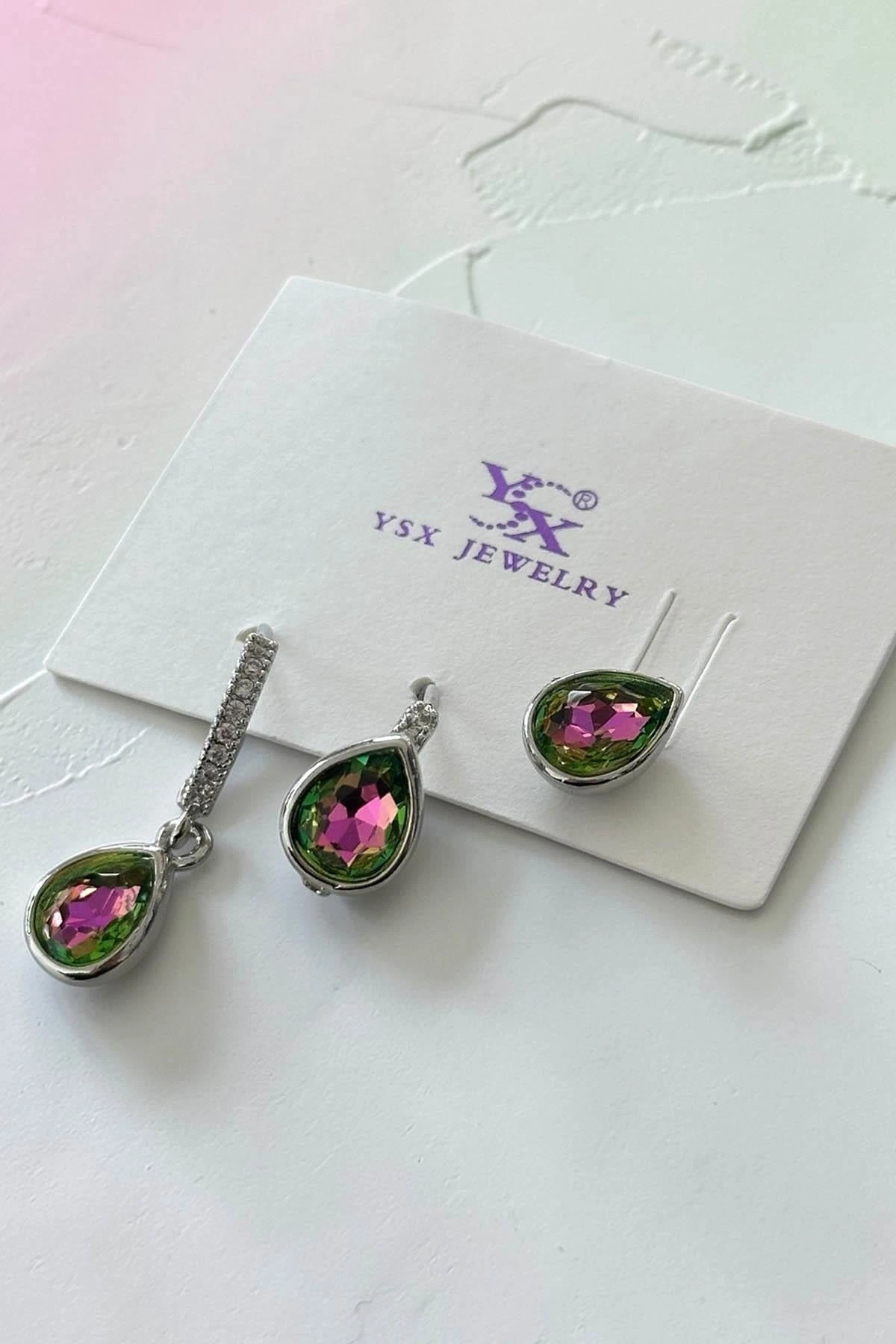 Gümüş Renk Taş Detaylı 3'lü YSX Küpe