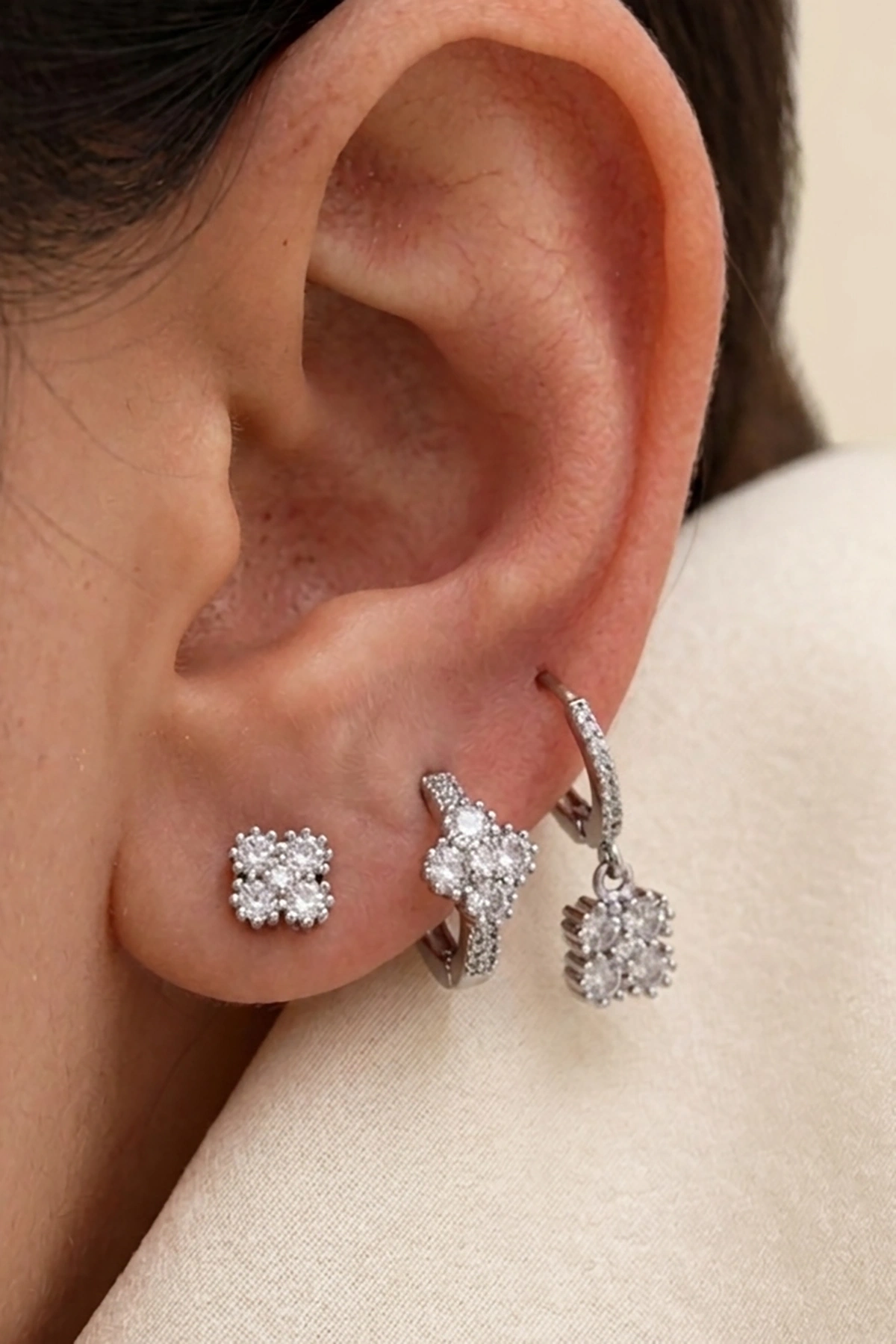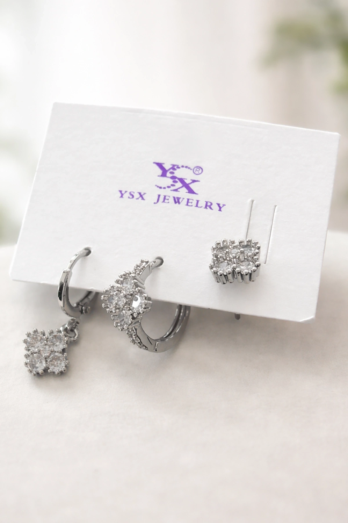 Gümüş Renk Taş Detaylı 3'lü YSX Küpe Set