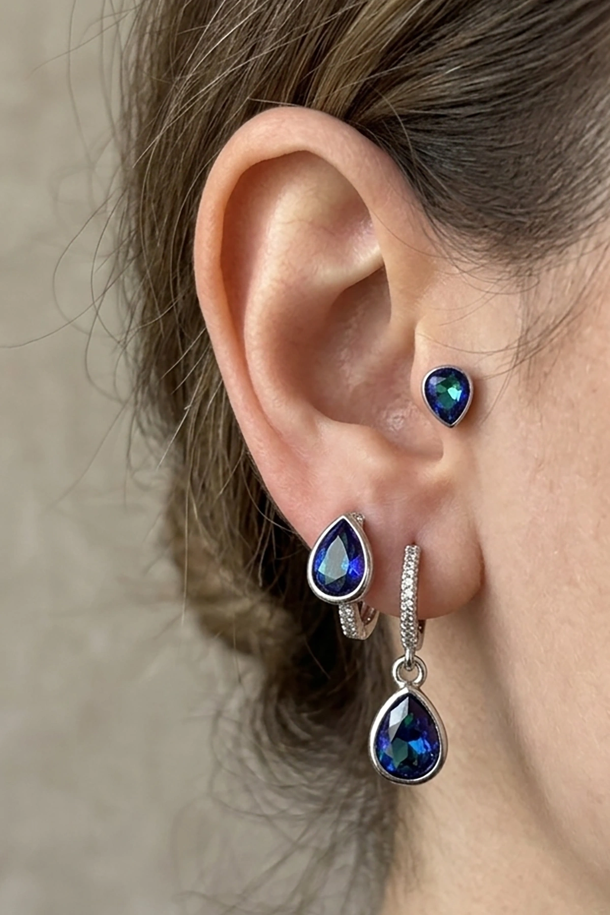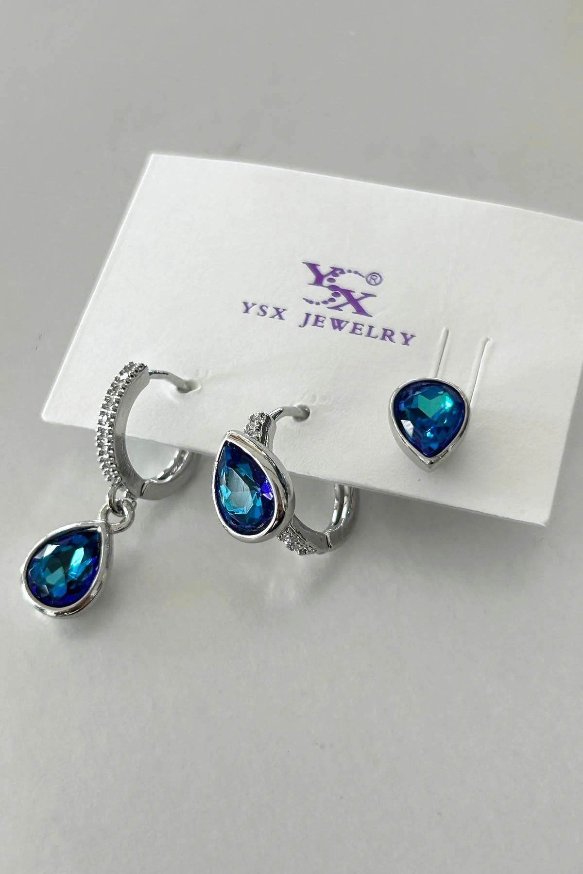 Gümüş Renk Taş Detaylı 3'lü YSX Küpe Set