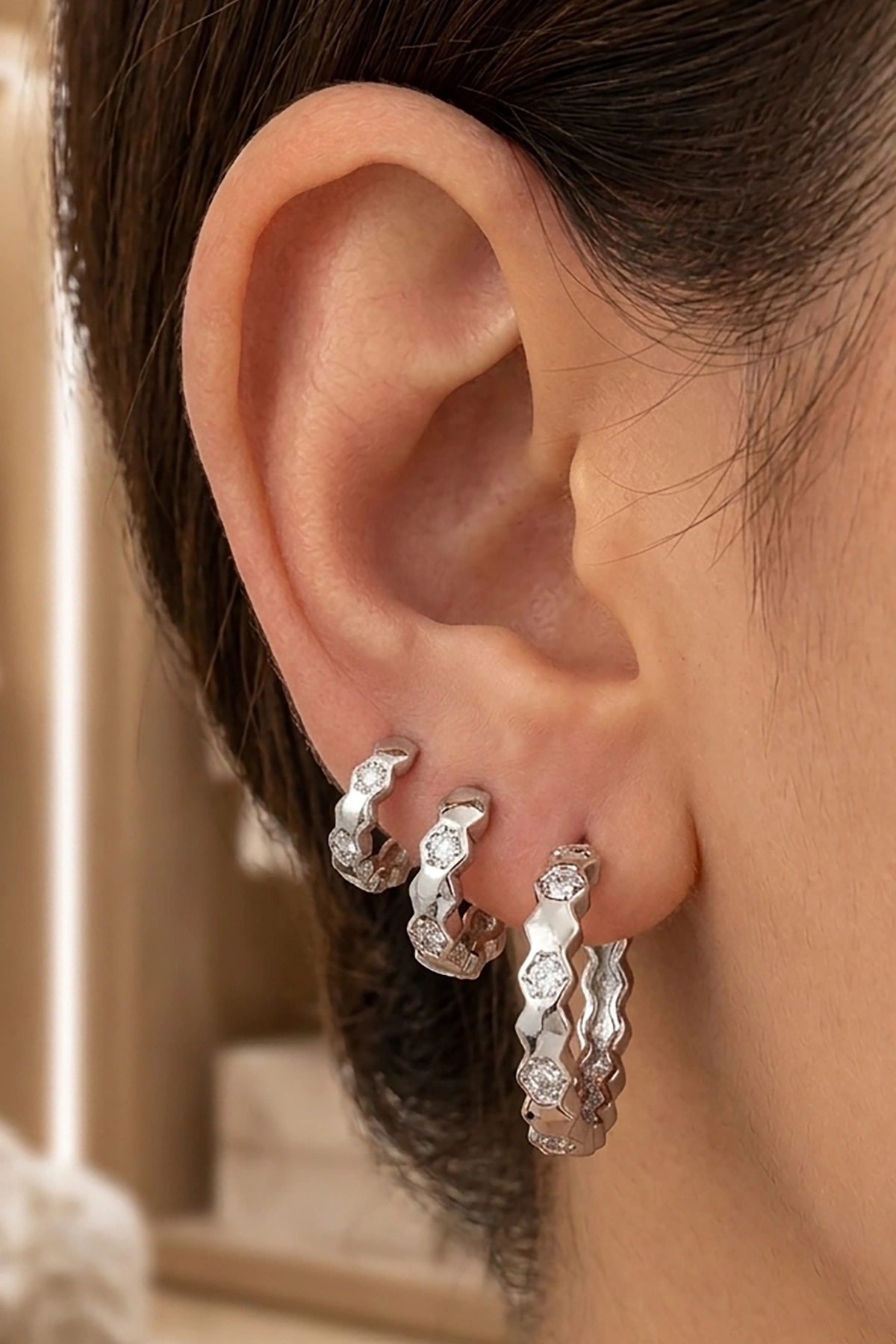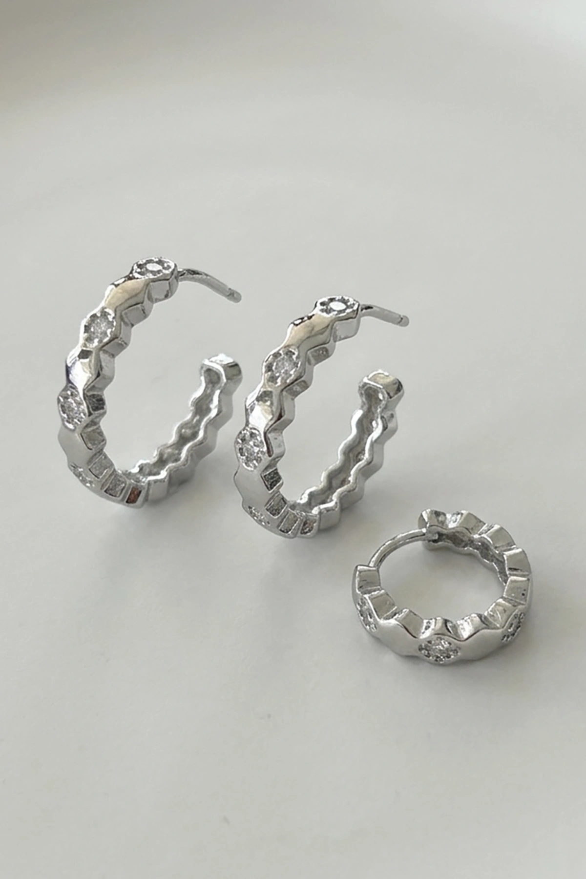 Gümüş Renk Taş Detaylı 3'lü YSX Küpe Set