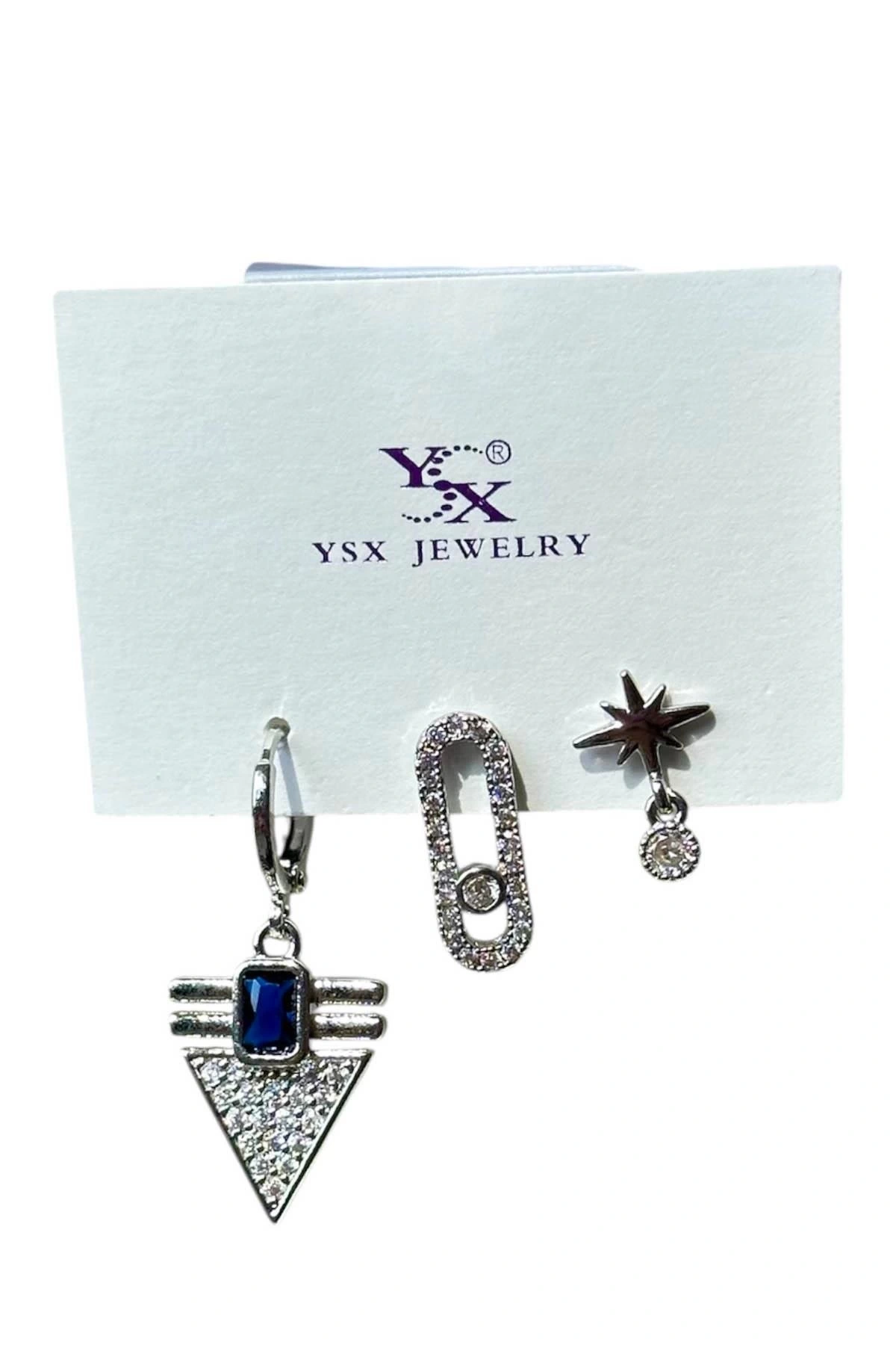 Gümüş Renk Taş Detaylı 3'lü YSX Küpe Set