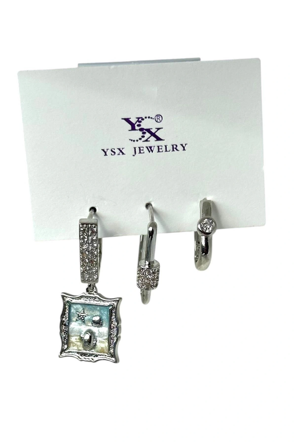 Gümüş Renk Taş Detaylı 3'lü YSX Küpe Set
