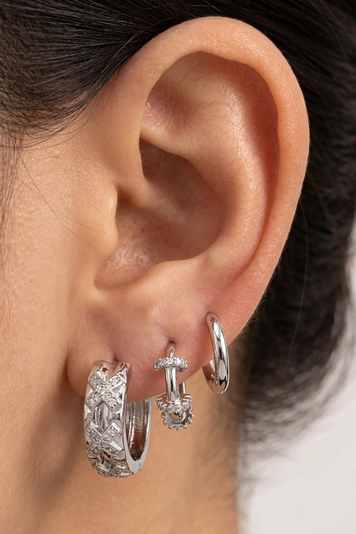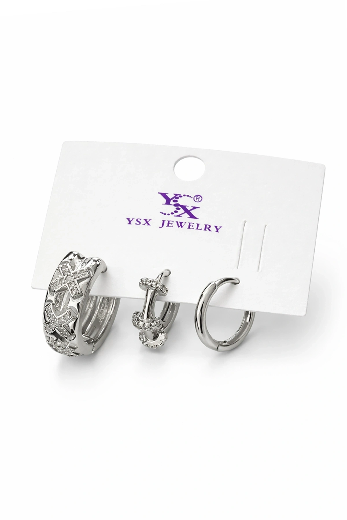 Gümüş Renk Taş Detaylı 3'lü YSX Küpe Set