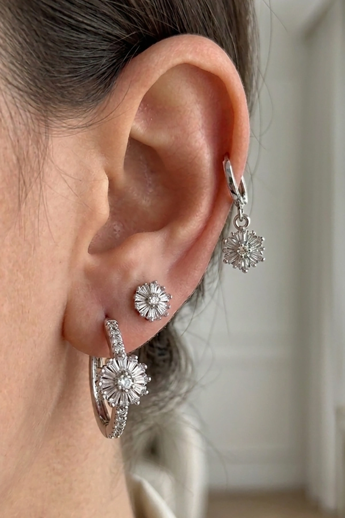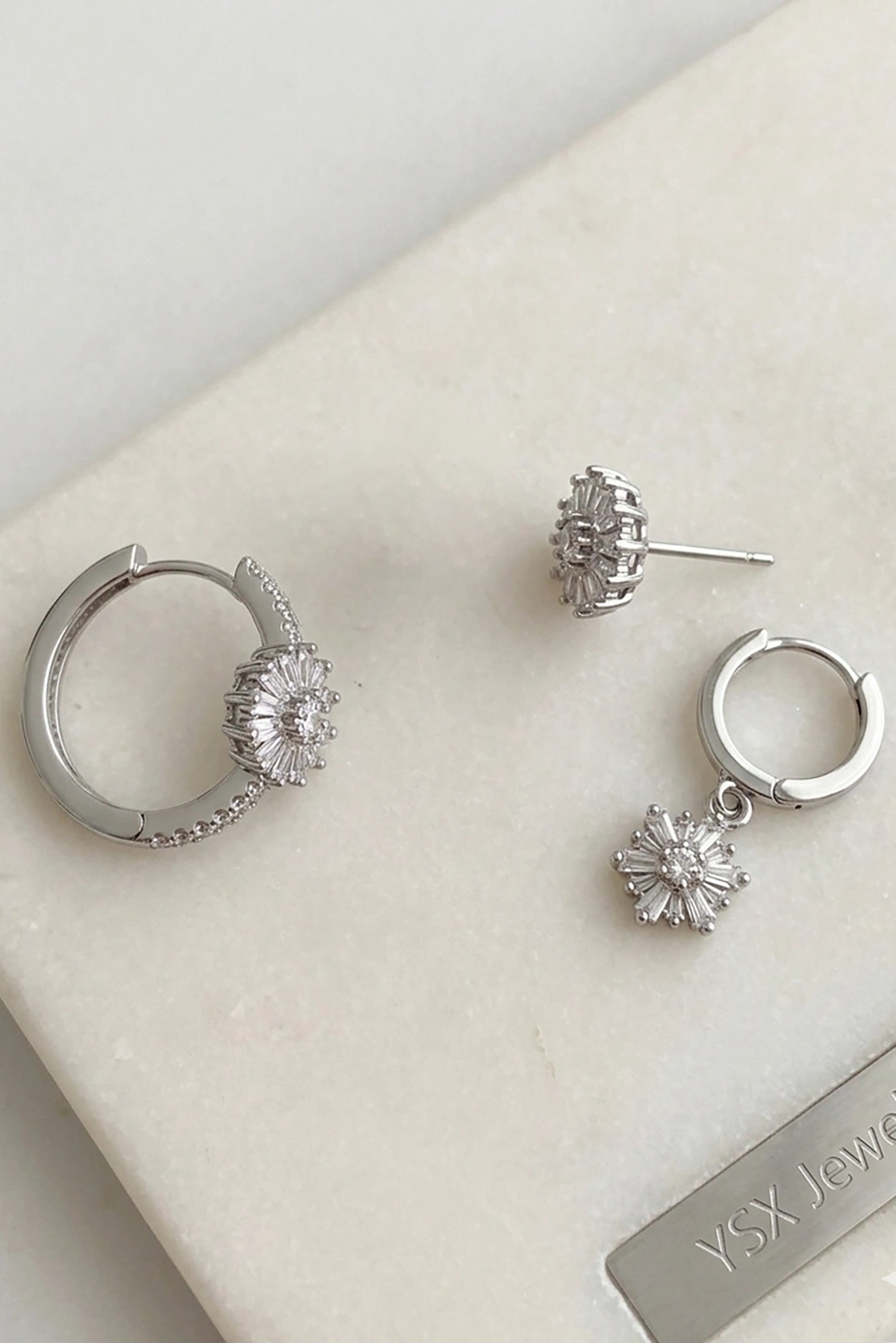 Gümüş Renk Taş Detaylı 3'lü YSX Küpe Set